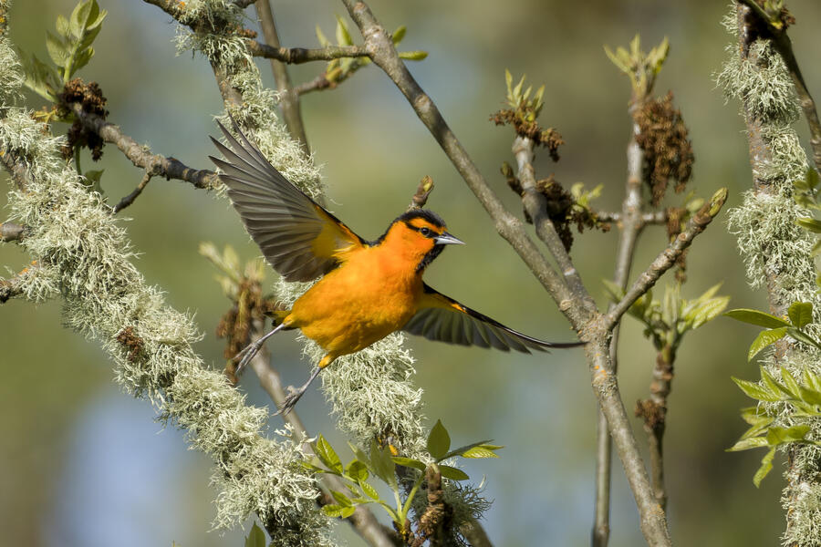 A male and female were foraging in a tree, very actively moving from branch to branch. The male was a brilliant orange. I'm not sure how these brightly colored, loud birds eluded me on my previous outings last year to the same location to find them. They were up in a tree but I, standing on the hillside, was slightly above them. I enjoyed standing there for 10 minutes or so and took a bunch of photos.