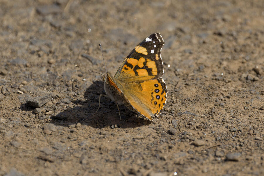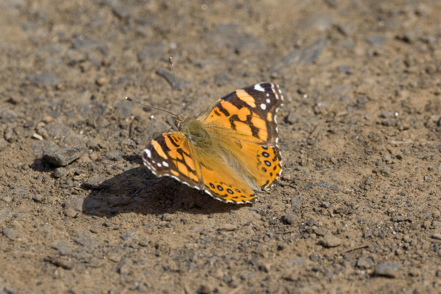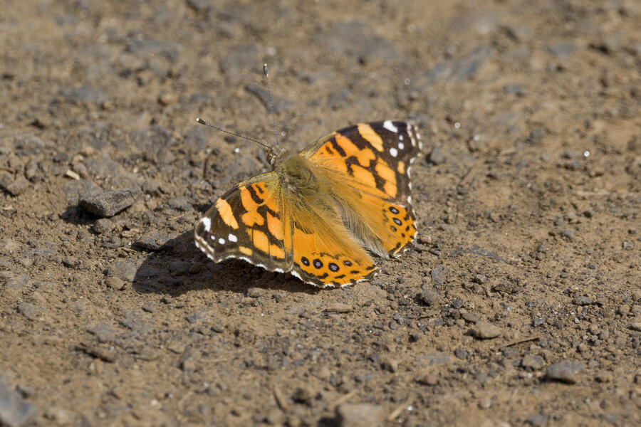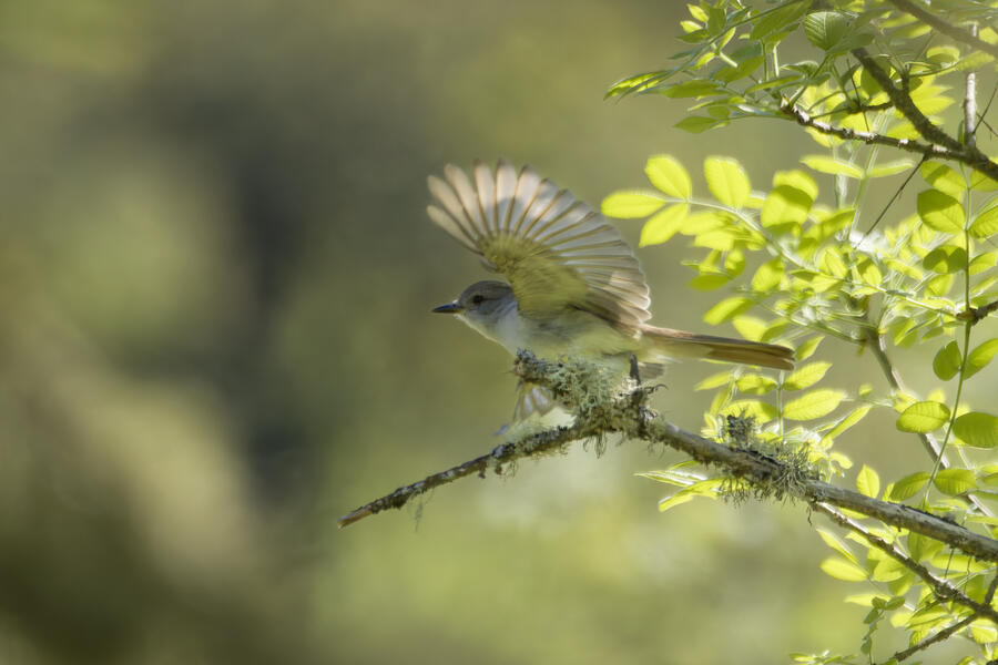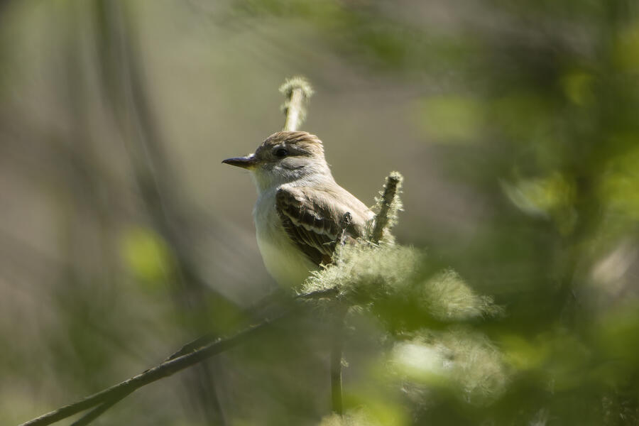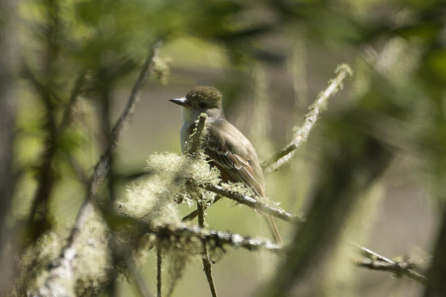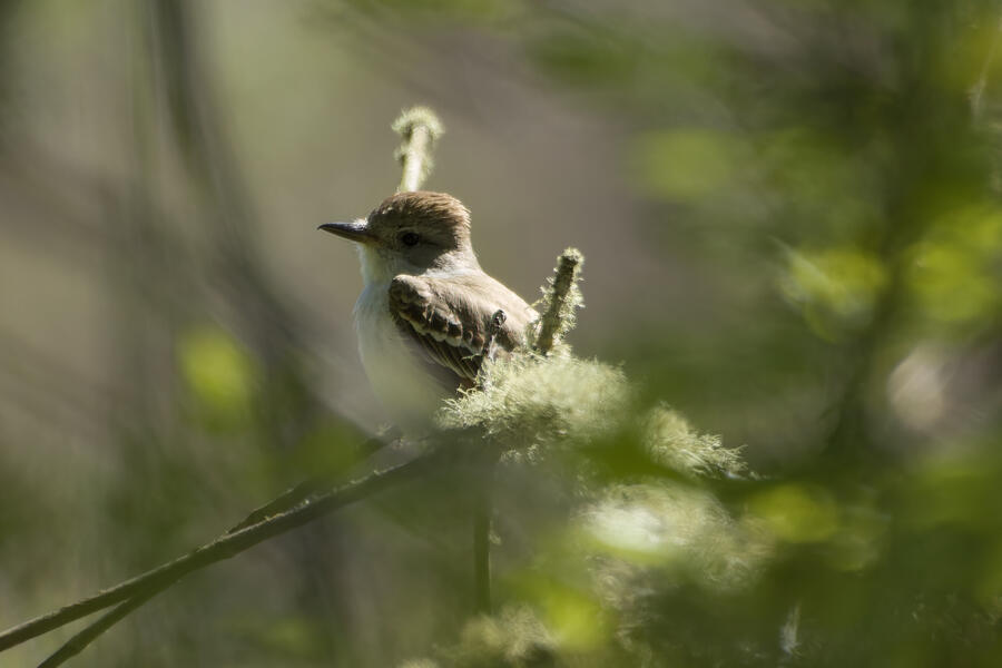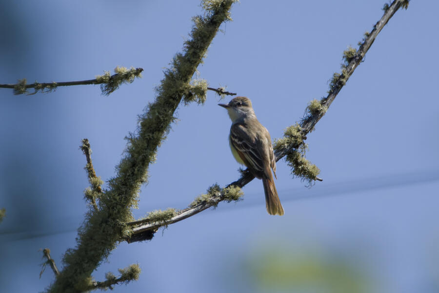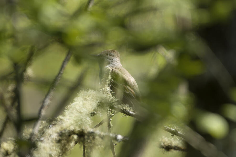 I didn't see much else of note on the next 3 miles of hiking. As I approached the parking lot once again, I saw some small birds on another path. There was a trickle of water in a small ditch along the path, so I figured I may run into some different species there. I walked for a while and was about to turn around when my Merlin app alerted me to the call of another lifer: Ash-throated Flycatcher. This is a rare sighting in the area, but other birders had reported (and photographed) one recently. I didn't go out looking for it but stumbled upon it! I didn't get a good look at it. It was initially perched low, but behind some trees. It then flew to a couple higher perches before flying out of sight. I managed to get a couple photos to help ID it. I'm really glad I decided to just keep going!