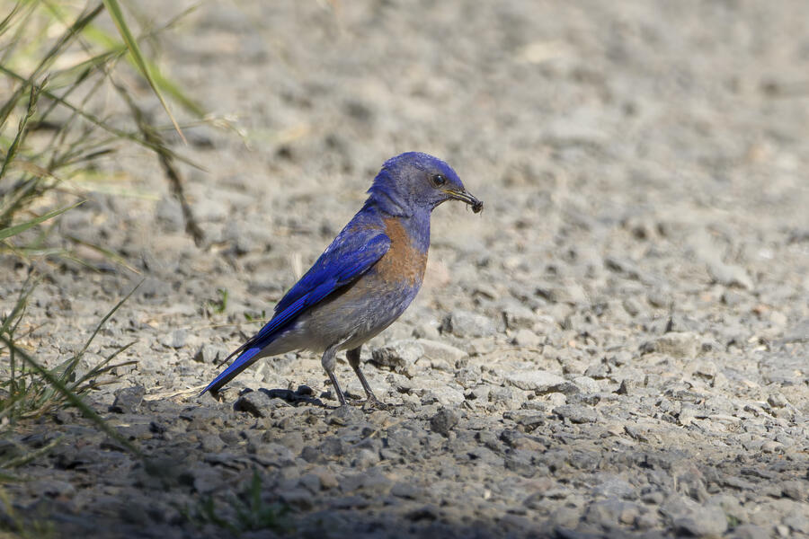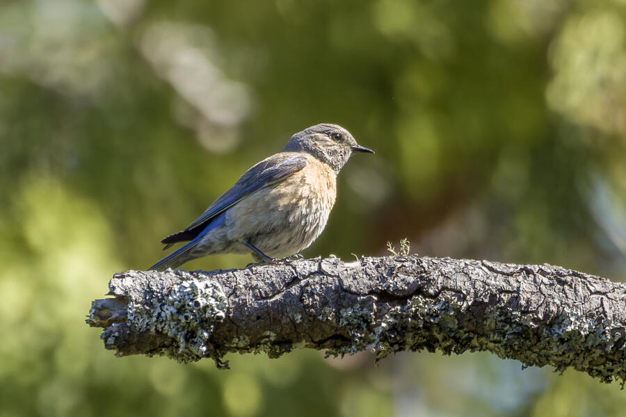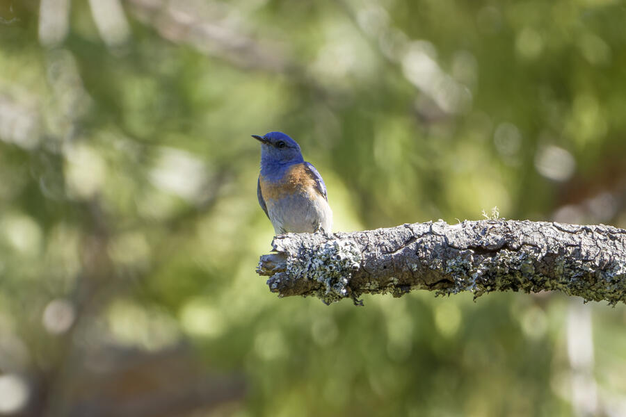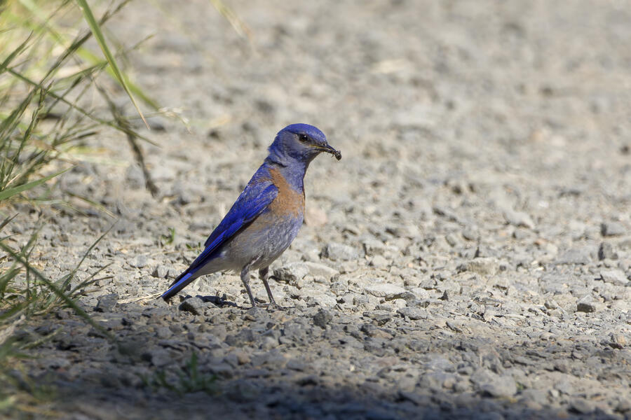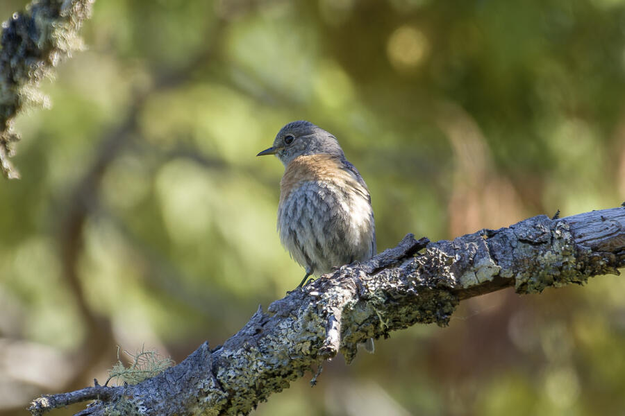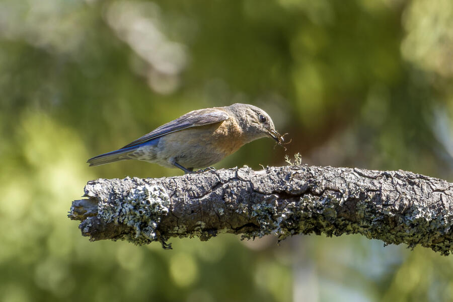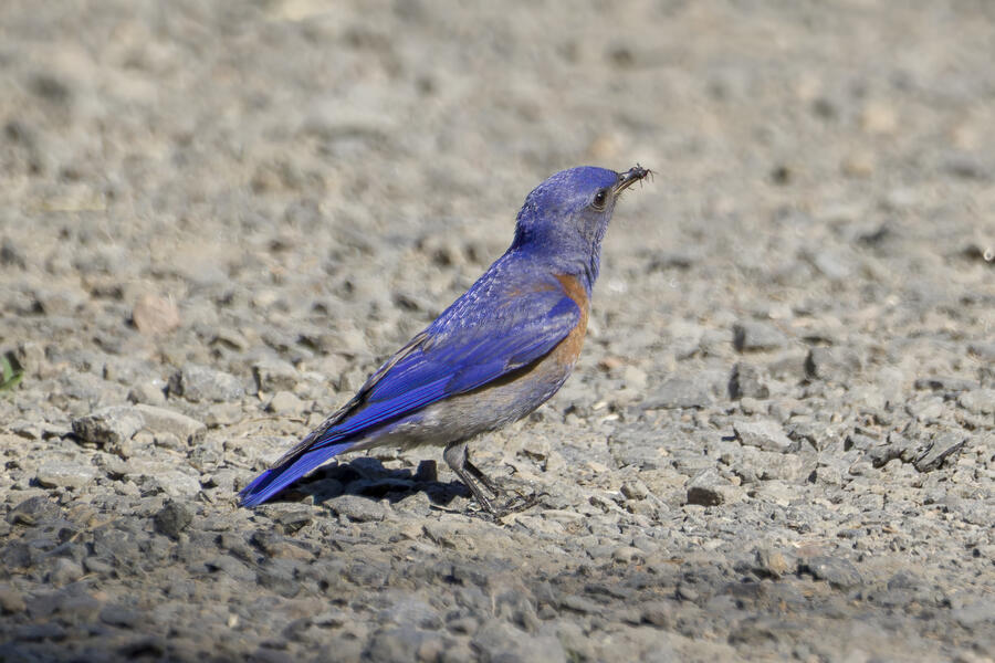 I also stopped to watch some Western Bluebirds hunting for insects. I watched one fly to a perch on a tree, look around for a couple minutes, then sally off to catch an insect, and return to another perch. He'd fly well more than 30 or 40 feet either toward another tree, or toward the ground! He repeated this again and again, apparently looking for the movement of distant insects both on tree branches and along the walking path. It was surprising to see how effective a hunter he was, and how far away his prey was!