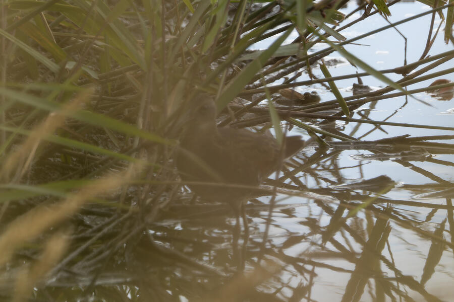 I then went out to the wetlands with a couple targets in mind, including a couple rare sparrows, phalaropes, and Virginia Rail. I've done a little research on spotting Virginia Rail, and this seemed like a good time of year to try to see one. The wetland is drying up at this point in the summer so I thought they might have to venture out of the cover of the reeds to feed. And there could be some young less-secretive rails running around.