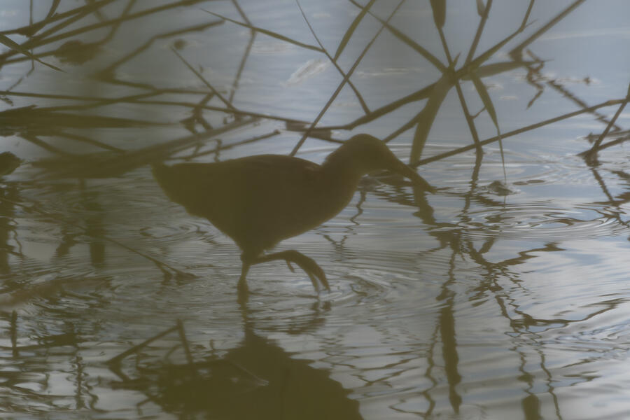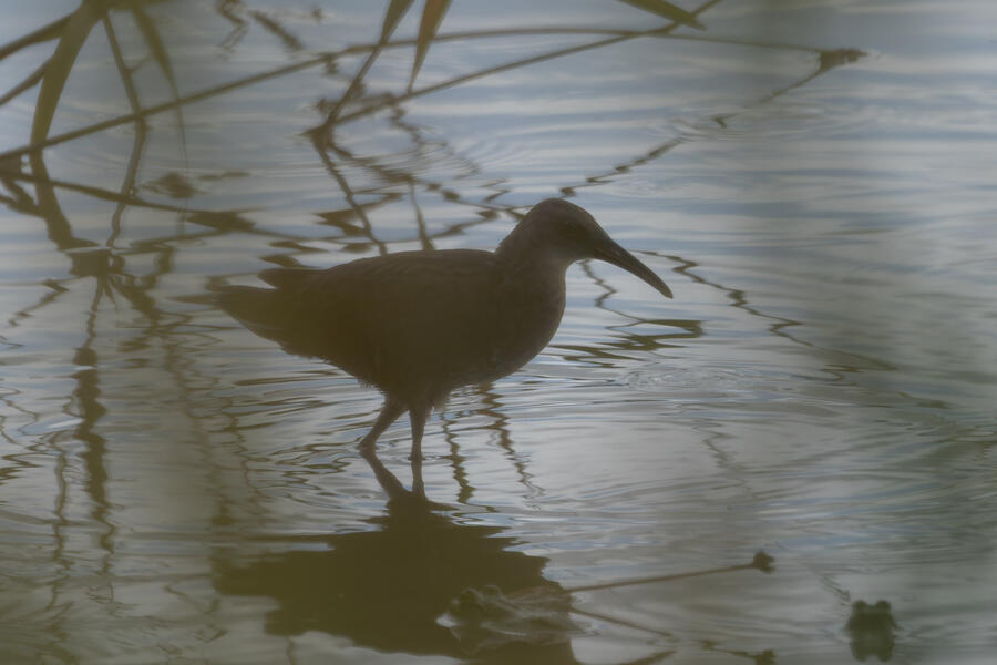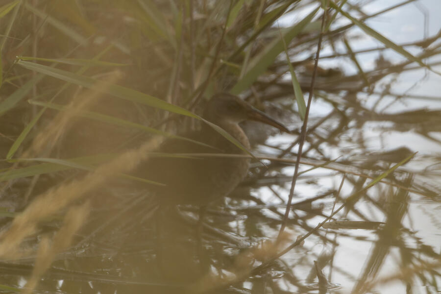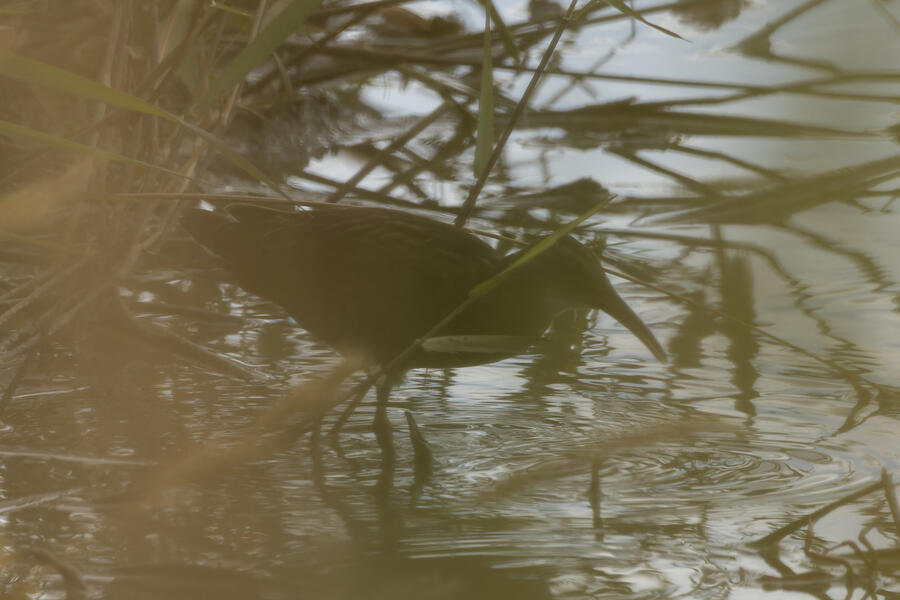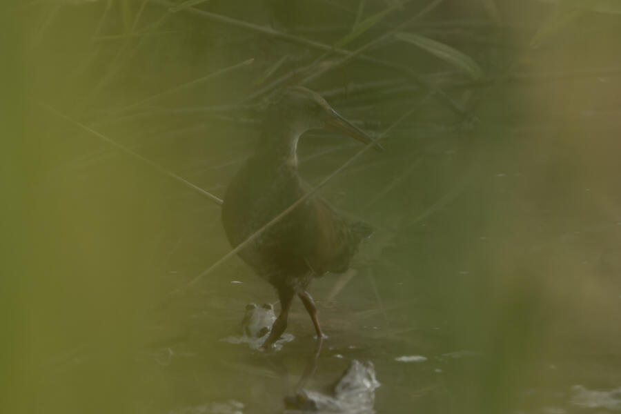 On this outing I caught my first-ever glimpse of a Virginia Rail when one flew from one area of reeds to another. I only saw it for about a second but it was entirely dark — a juvenile. A little while later, while standing still near an isolated patch of water, I saw another couple of rails. I had to photograph them through some grasses and reeds, using manual focusing, but I managed to get a few photos! Finally!