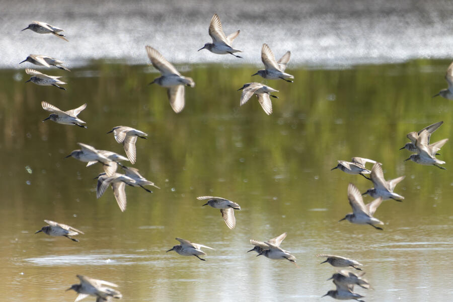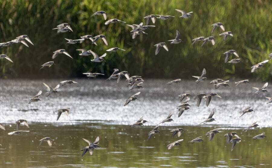 Western SandpiperThere was one group of ~70 sandpipers flying around in a tight group. I believe the legs look too black to be Least Sandpiper, so I am ID'ing them as Western Sandpiper.