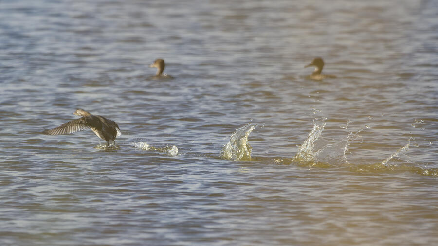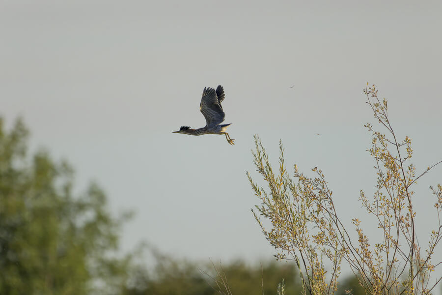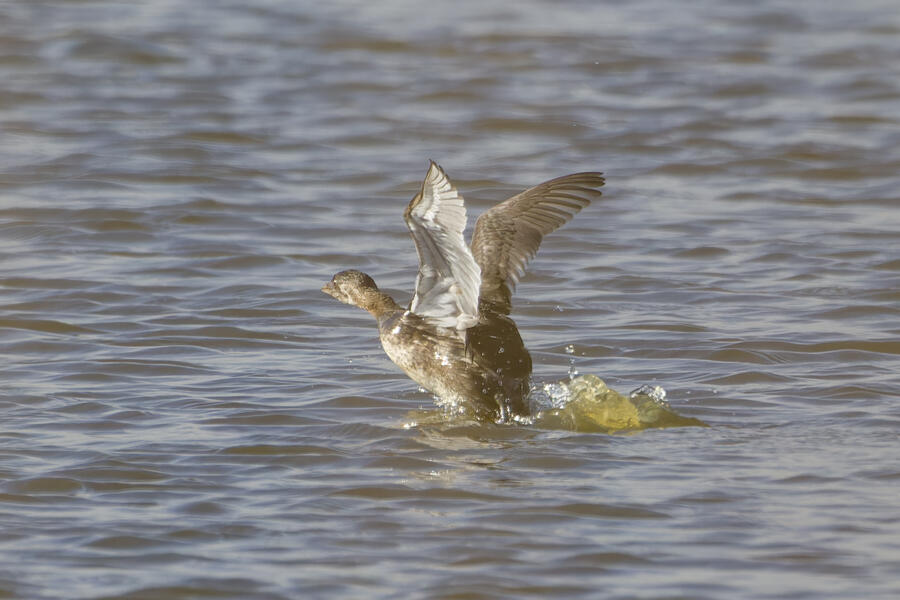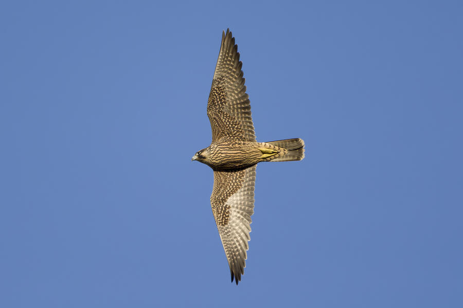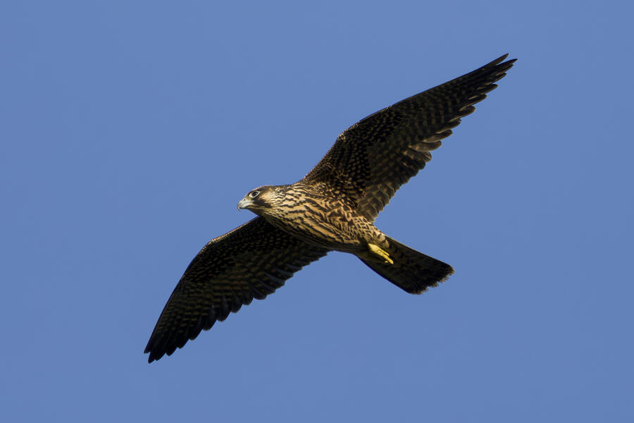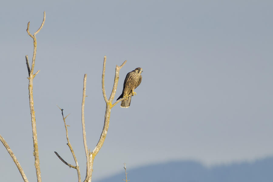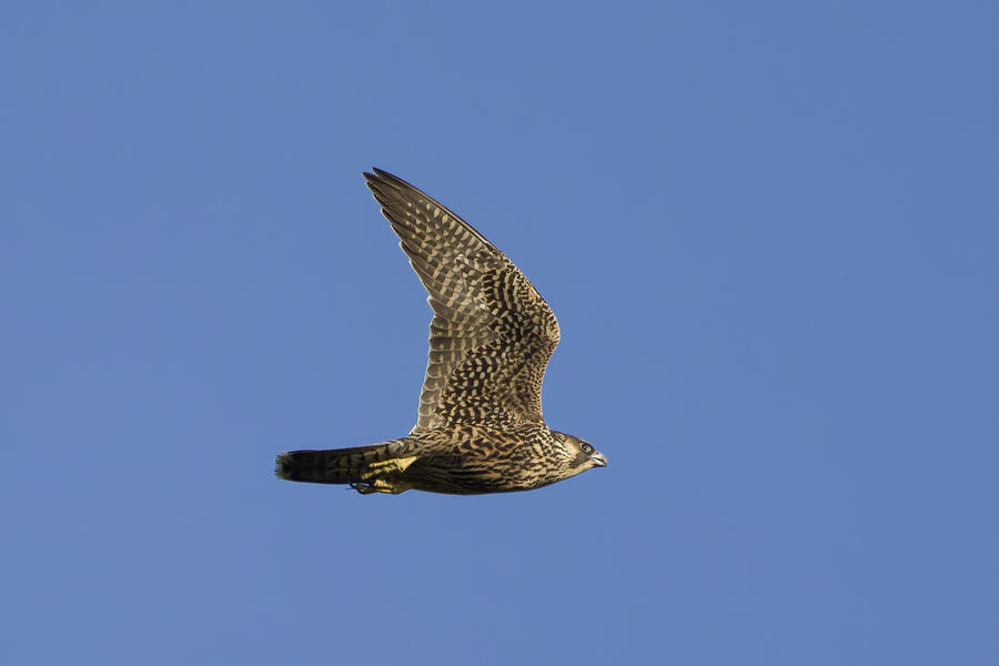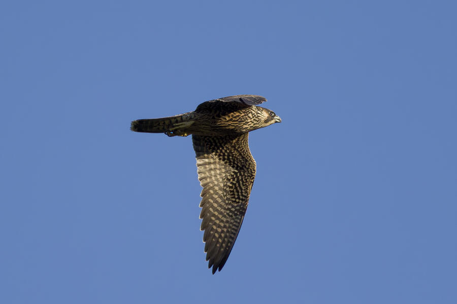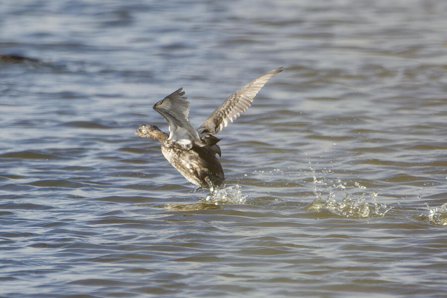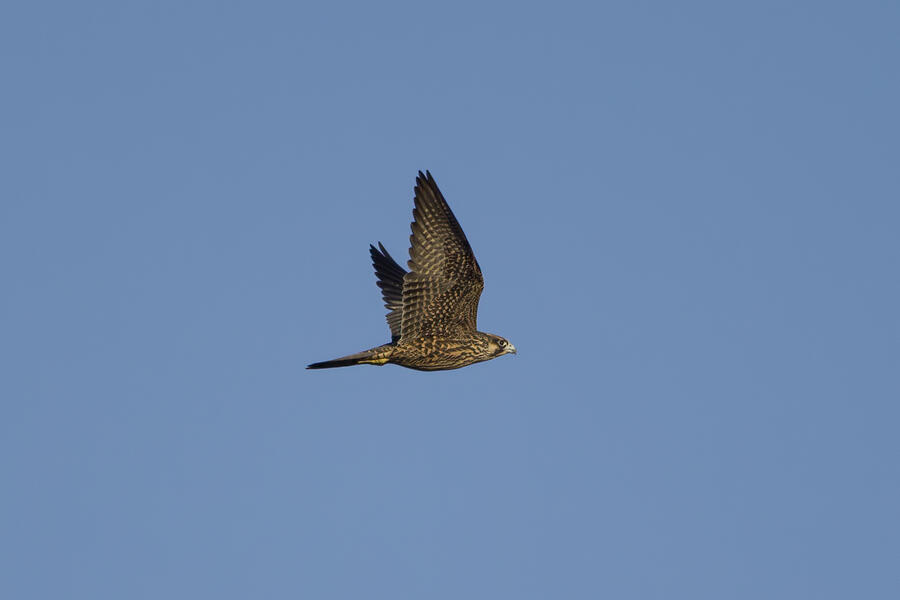 On this recent birding walk I photographed a few unusual sights. I watched a Green Heron land in a small tree, and take off flying again soon afterward. I also saw a pair of Peregrine Falcons flying around. They had relatively quick wing beats, and pointy wings, so I knew they were somewhat unusual. At least one of them, which I photographed, was a juvenile. I also took some bad photos of an immature Pied-billed Grebe actually taking flight. I don't think I've ever seen a grebe flying before!