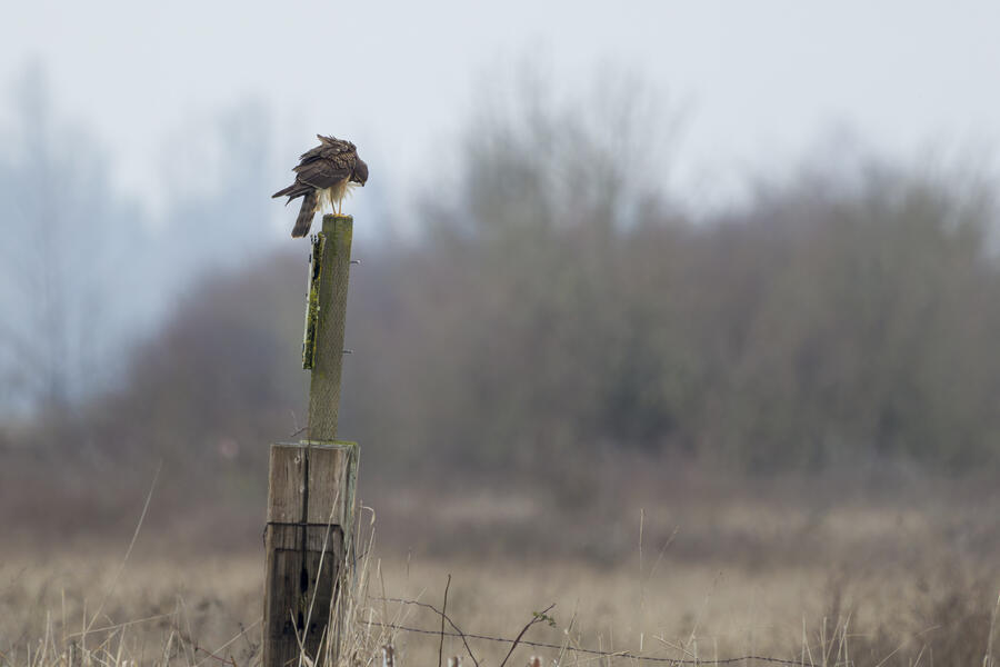 Northern Harrier, Red-tailed HawkAt one point I took a detour to get closer to the hawk that ended up perched in this tree. I was hoping it was a Rough-legged Hawk, but it was just a Red-tailed.