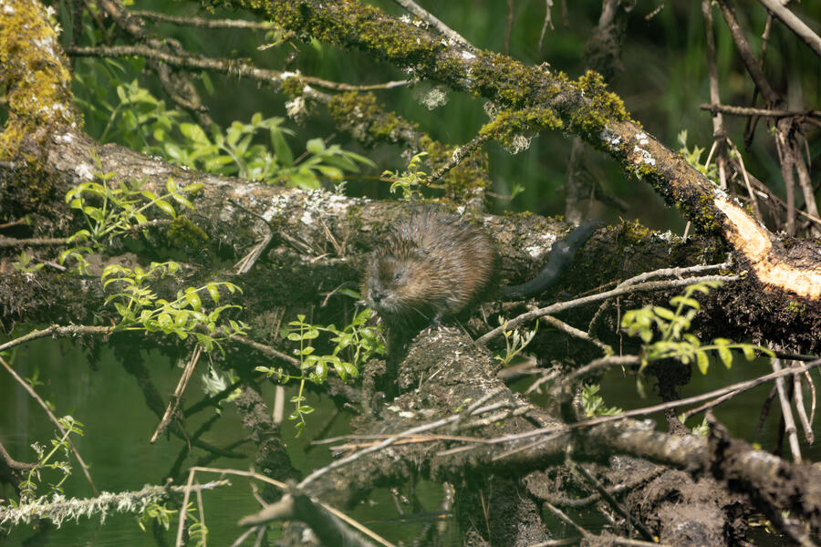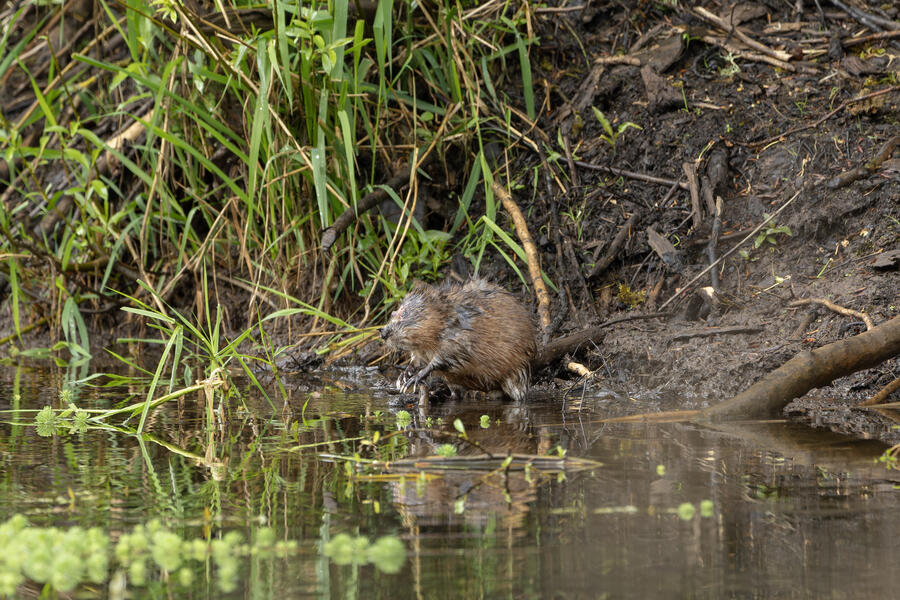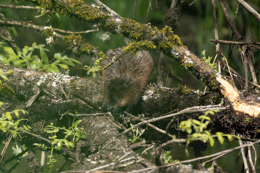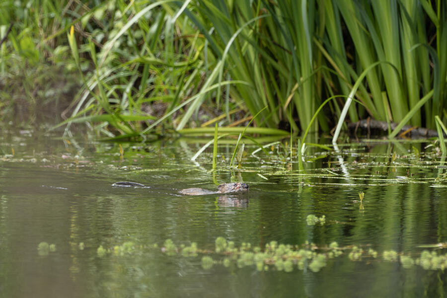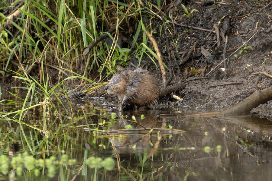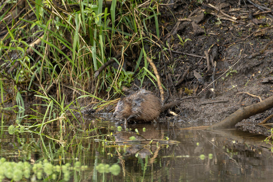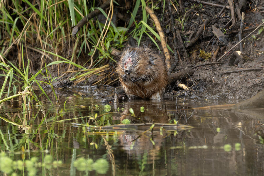 I saw a couple of large coypu/marmot creatures in some waterways... the first one didn't appear to have any eyes when I was looking through the tiny viewfinder in the camera. After loading the images onto my computer, I was amazed and a bit horrified to see that it appears to be the survivor of some horrible attack or injury. It appears to be missing much of its face, the poor thing! I watched it swim around and even clean its face and hands normally, so perhaps it's getting by just fine after its ordeal.