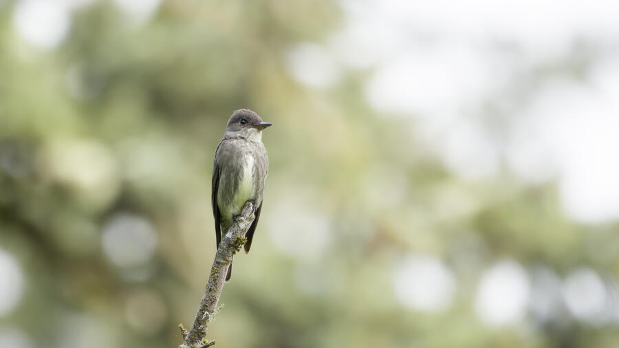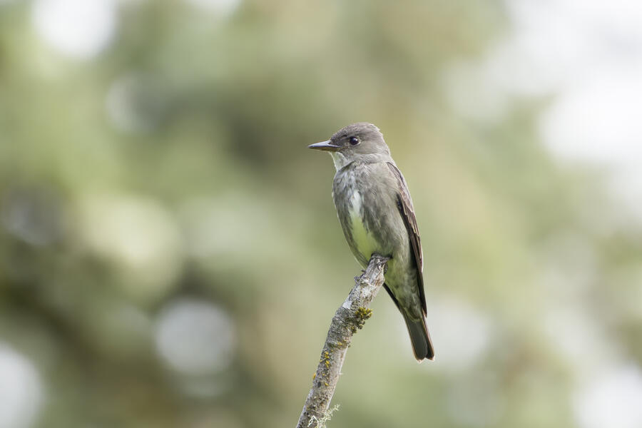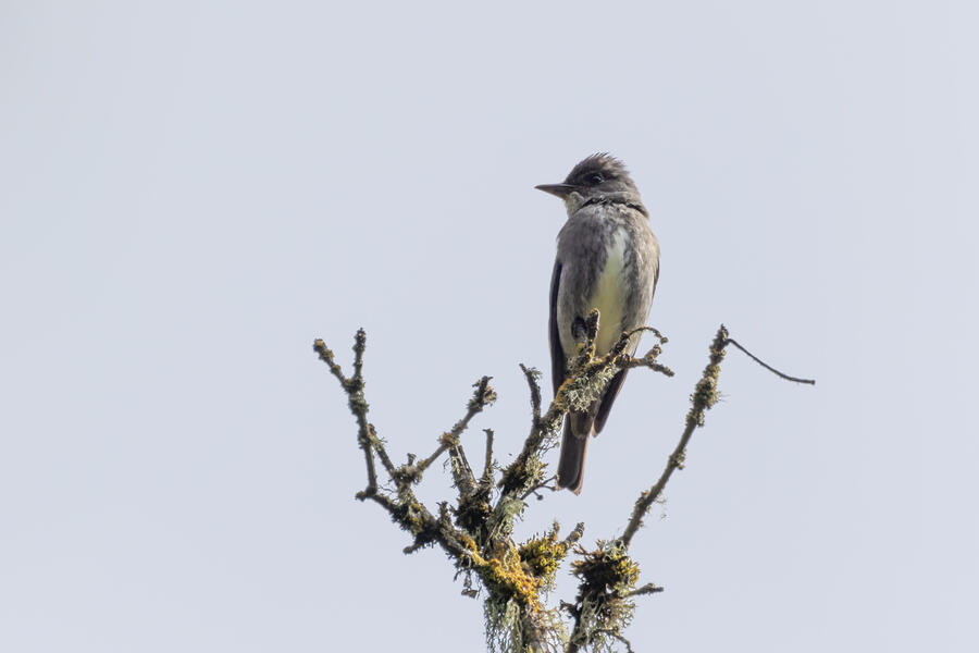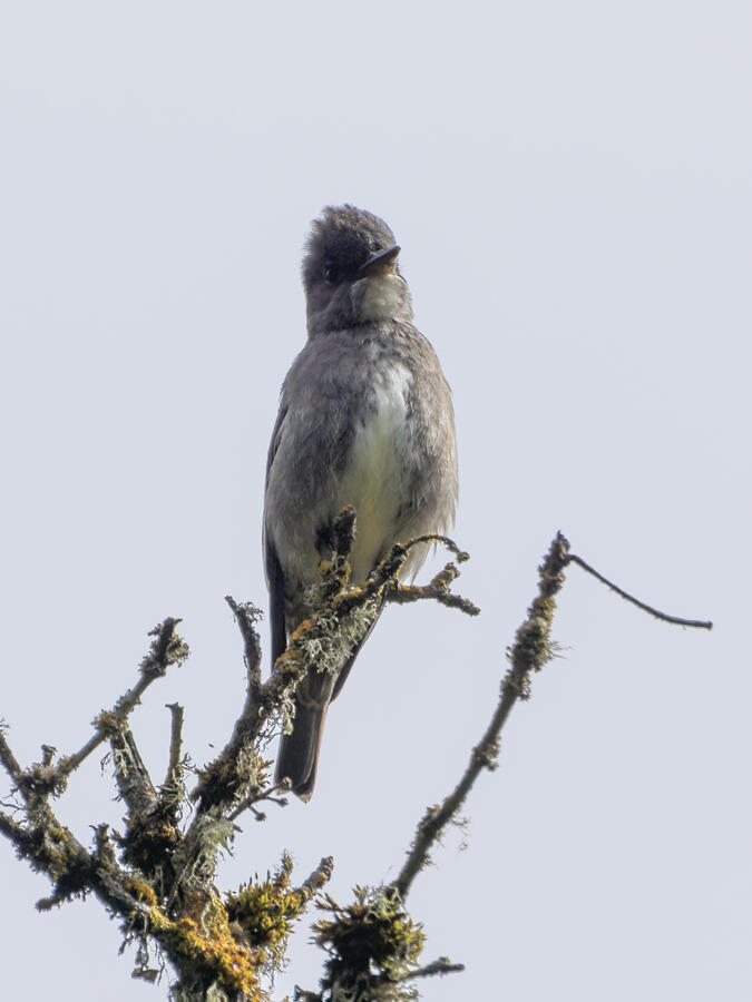 I quickly realized that of course these weren't actually my first photos of an Olive-sided Flycatcher! My first were of the strange dark flycatcher with white tufts shot just the day before!
