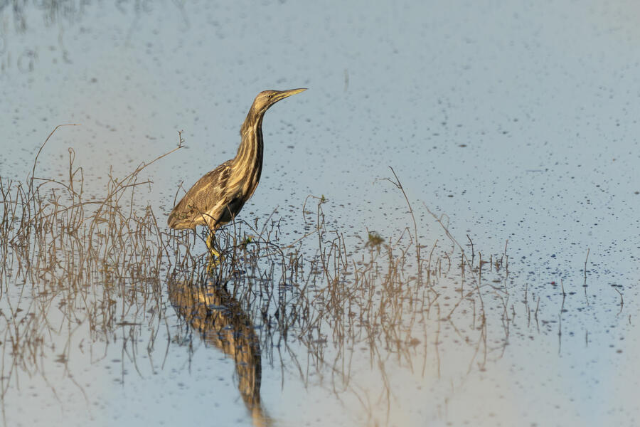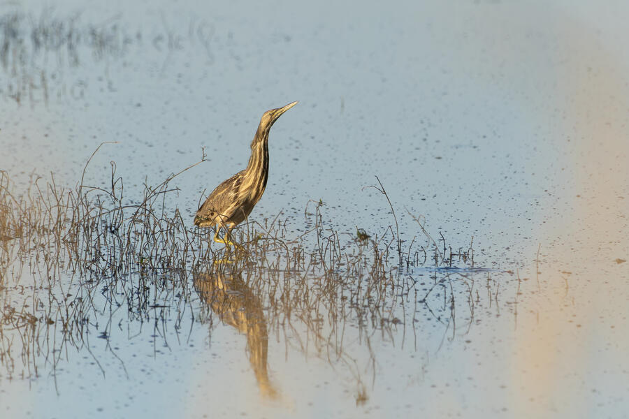 Wilson's Phalarope was my target on my next visit... (no luck). Upon arriving quite early in the morning I was able to photograph a male California Quail out of the car window. I'd seen him perched up high on a few recent visits, but this time he stool still in the golden-hour light and didn't flinch until I had to open the car door to get out. Soon afterwards I saw a bunch of small sparrows on the gravel path, and stopped to photograph one that looked quite plain. It appears to have been a lifer Brewer's Sparrow! Pretty cool, and I'm glad I noticed it looked a bit different, but I wish I got a better look at it. I also got some photographs of an American Bittern standing right out in the open, which they almost never do.