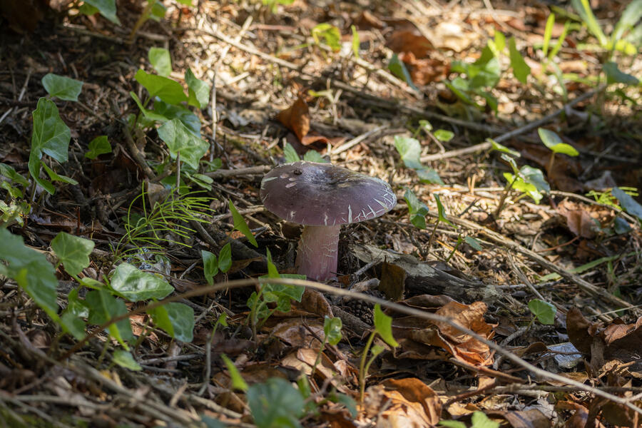 I used Photoshop to blend an exposure where the mushroom cap was sharp with another exposure where the stem was sharp.