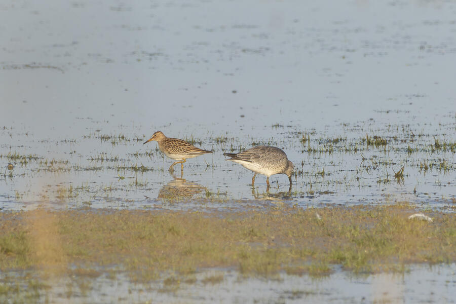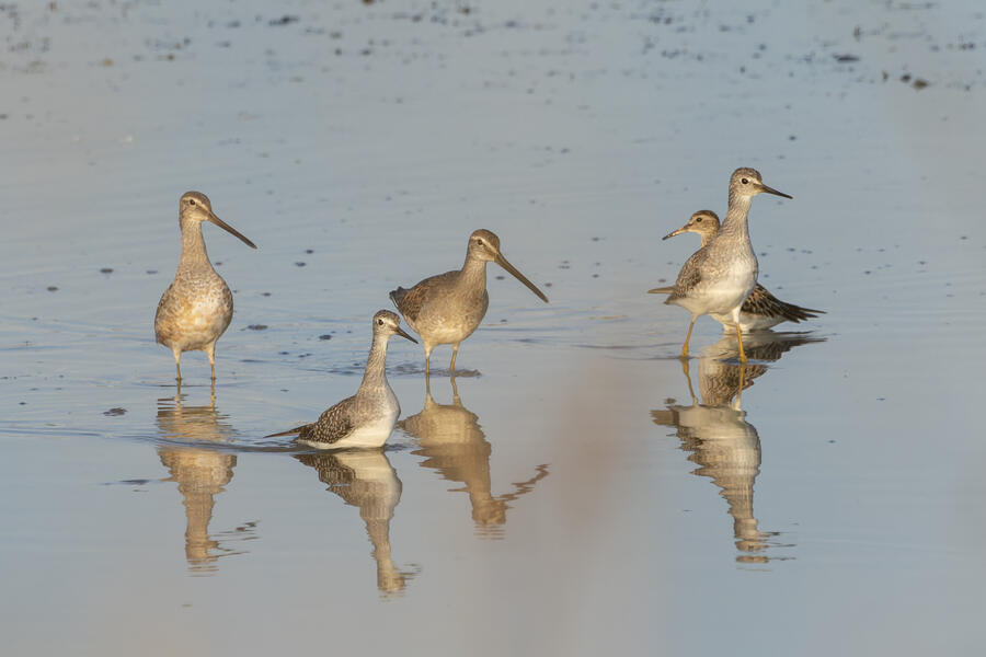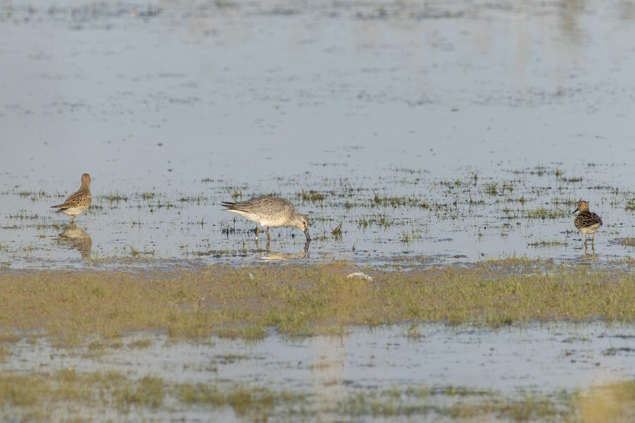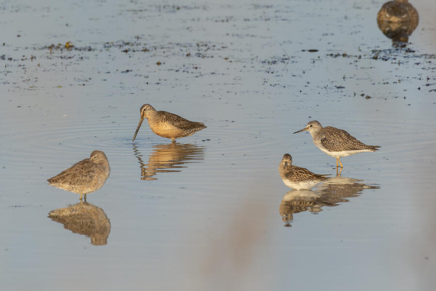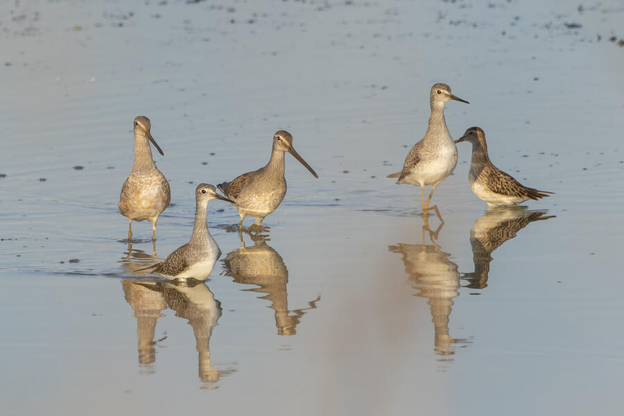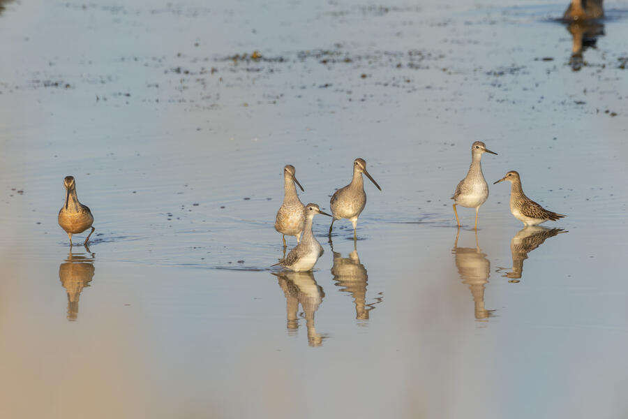 Short-billed/Long-billed Dowitcher, Pectoral Sandpiper, Lesser Yellowlegs7:33AM Saturday August 31, 2024