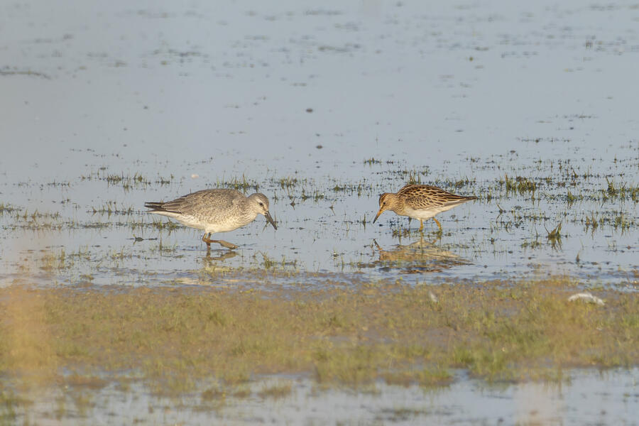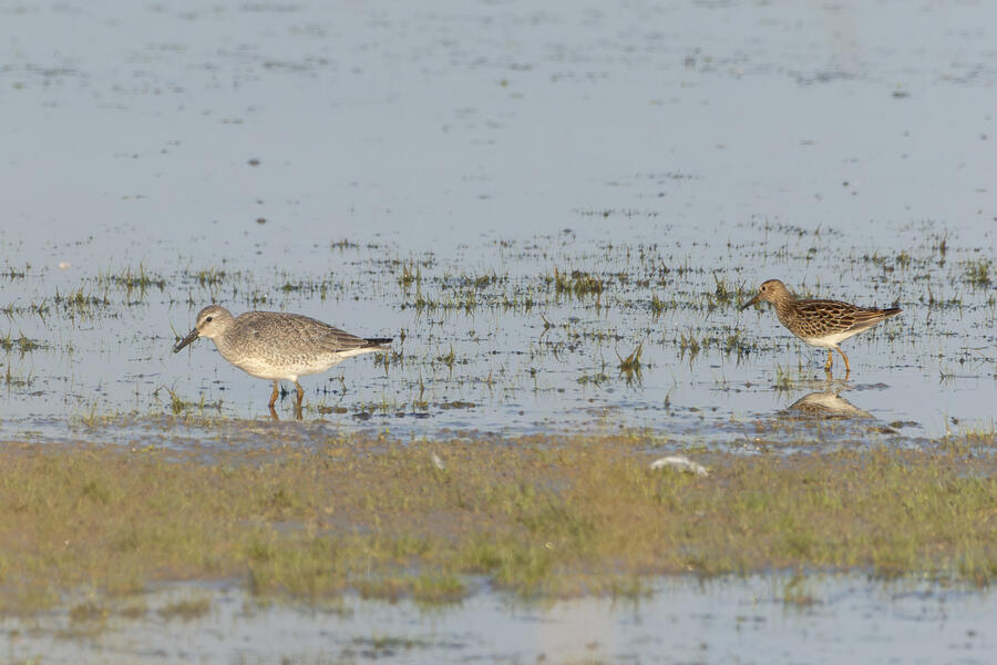 Short-billed/Long-billed Dowitcher, Pectoral Sandpiper, Lesser Yellowlegs7:36AM Saturday August 31, 2024