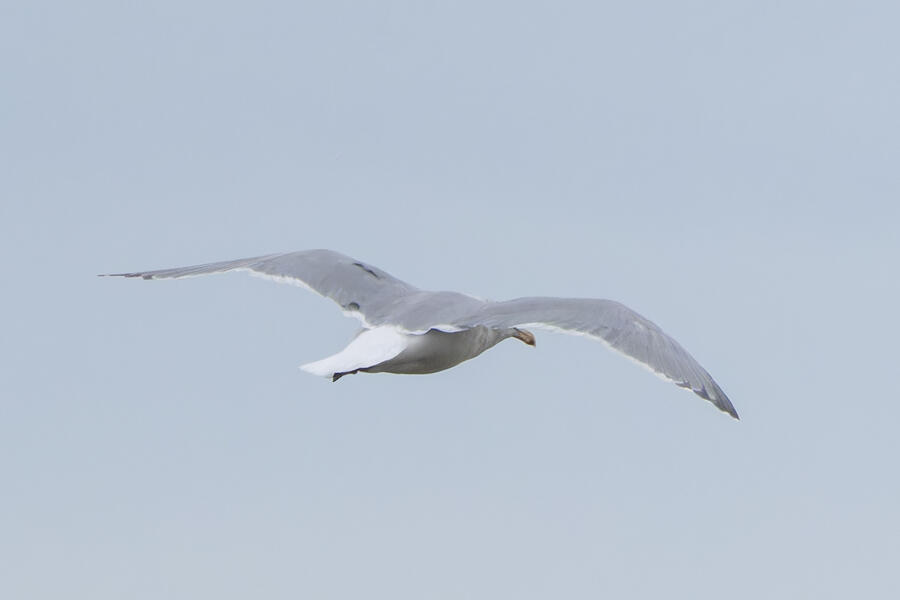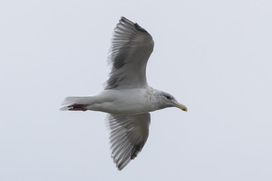 Western x Glaucous-winged Gull (hybrid)This looks mostly like a Glaucous-winged Gull to me, but the wingtips are too dark. As far as I know this indicates it's likely a Glaucous/Western hybrid which are super common in the PNW. The wing tips aren't dark enough for a Western Gull, and the head has way too much gray streaking for a Western Gull.