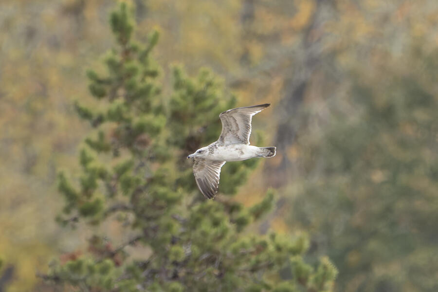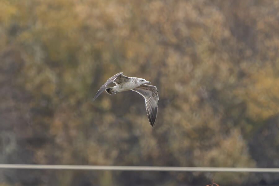 California GullThe gray feet, dark eye, gray bill with dark ring and lighter tip, and overall messy brown color all seem to indicate a California Gull to me.