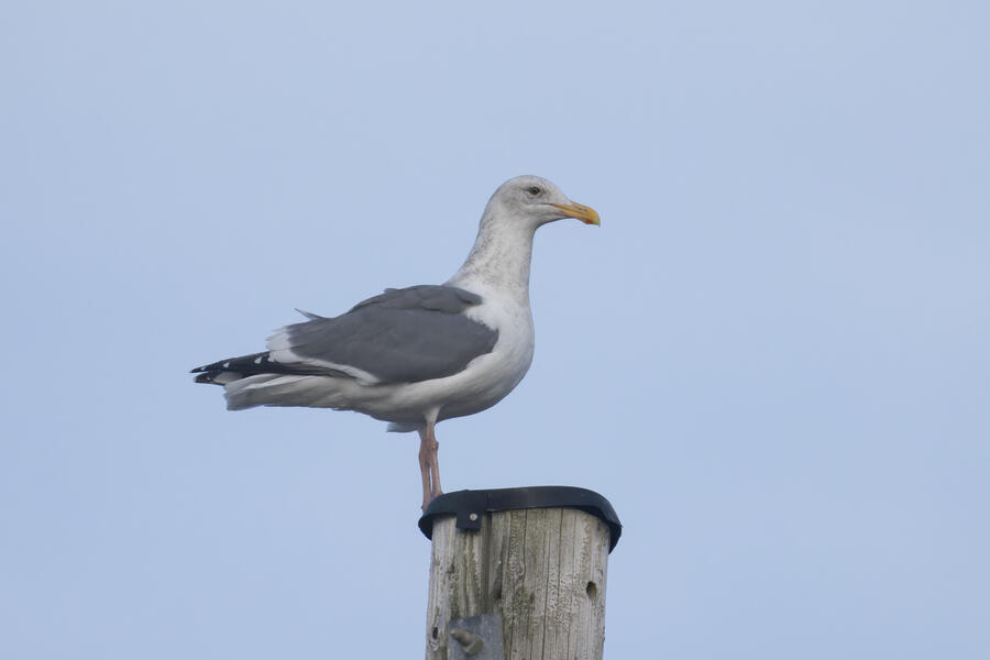 Western x Glaucous-winged Gull (hybrid)Possibly a Western x Glaucous-winged Hybrid. American Herring can be ruled out because the back is too dark and the bill is too bulbous. The eye also doesn't seem bright enough for a Herring.
