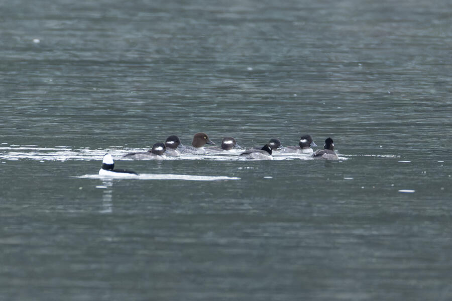 Greater/Lesser Scaup, Common Merganser, Ruddy Duck, BuffleheadThis pano is useless as a thumbnail here, oh well. The full image is 36,240 by 2,075 pixels — at full 300dpi resolution it would be 10 feet wide if printed! These ducks were a bit less than a half mile away. I took a bunch of photos and used Lightroom Classic's panorama tool to merge them. This is quick and easy enough to do that I do it pretty often just for counting distant birds (with my Click Counter app). This image was so large that it had to be cropped into two halves (and possibly scaled down a little, I don't remember) before the Click Counter web app would allow it to be dropped onto the page.