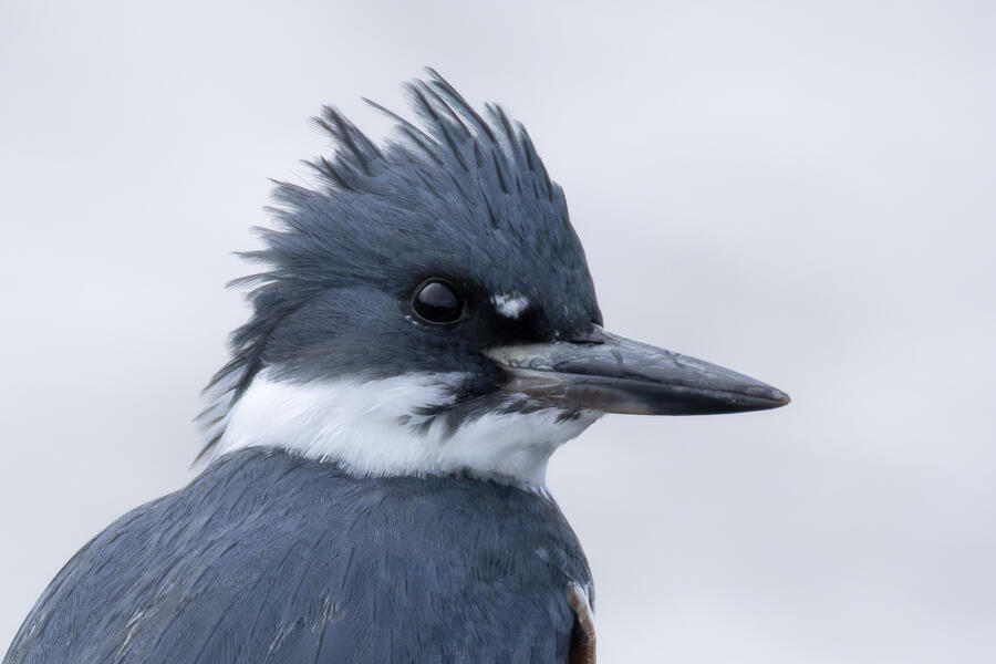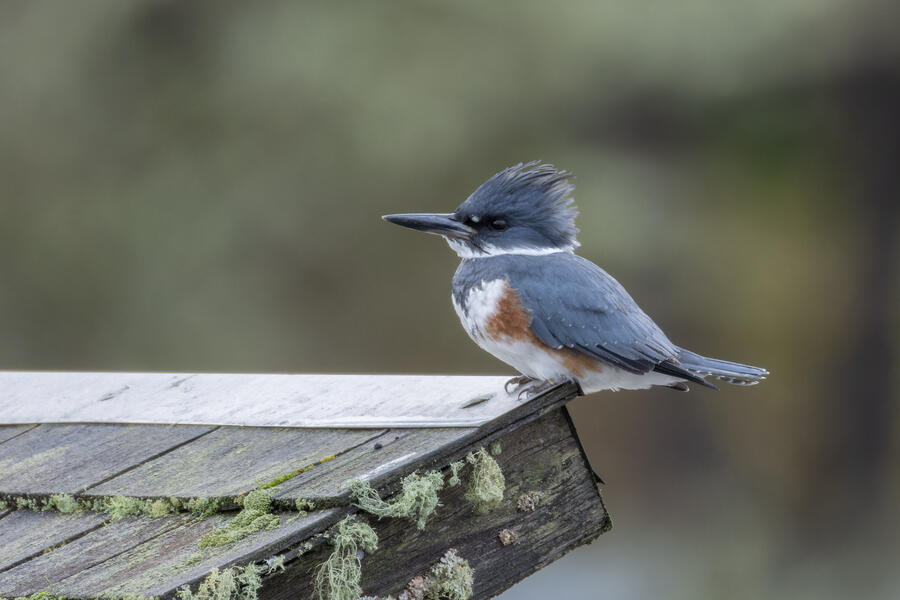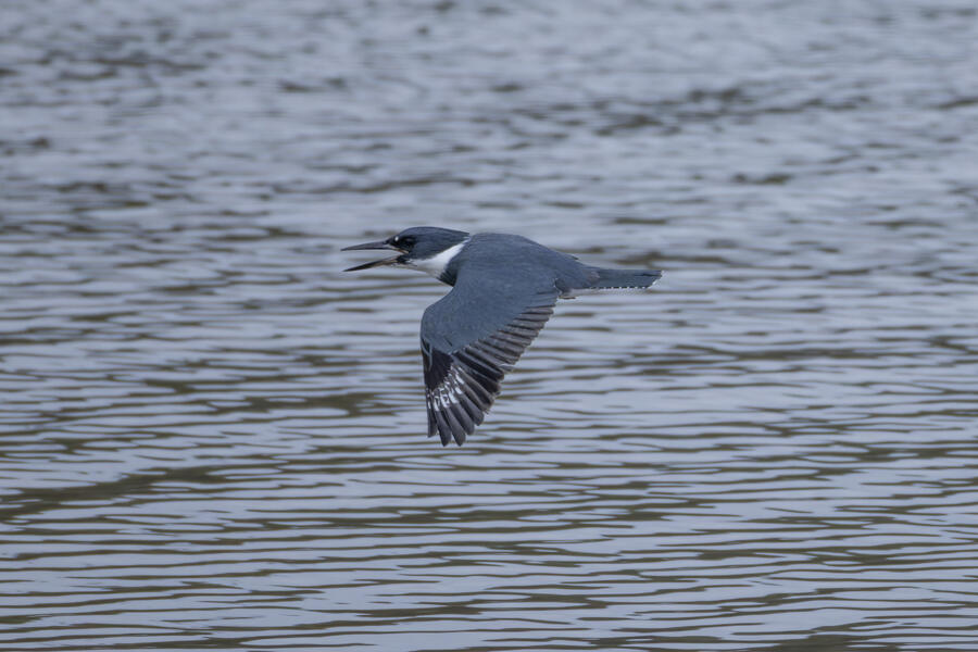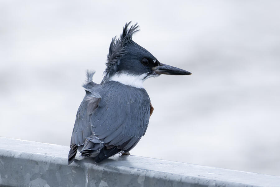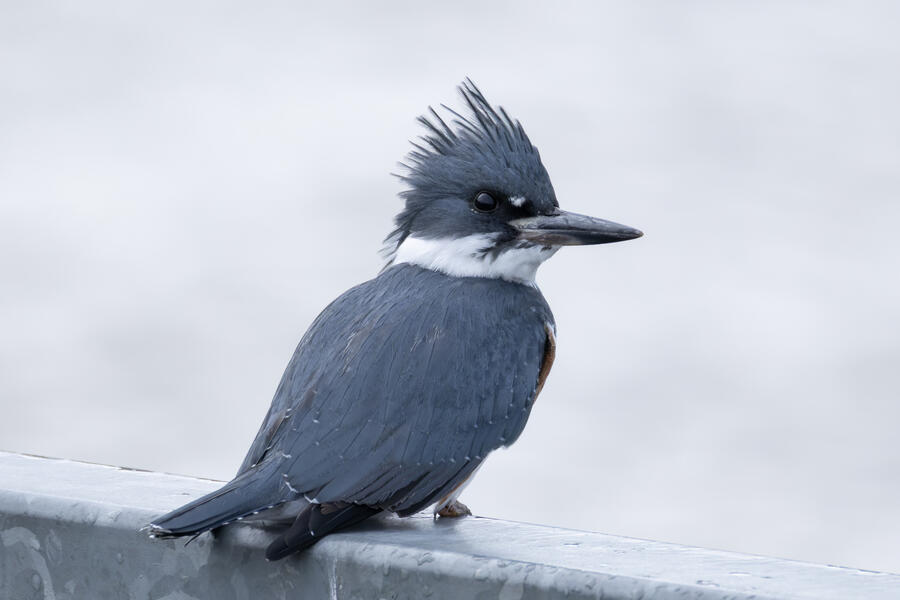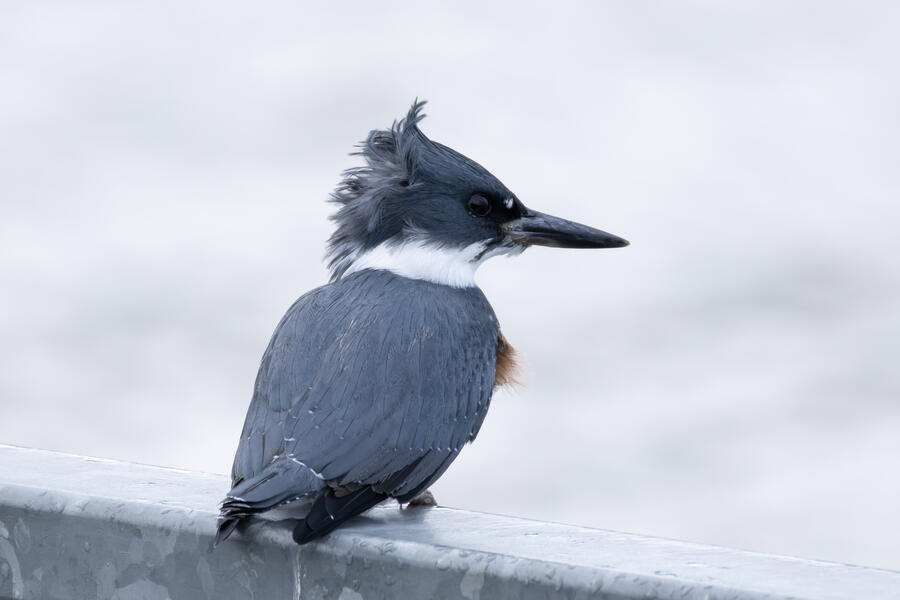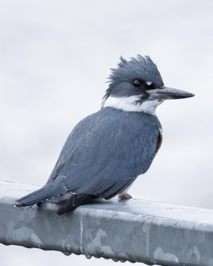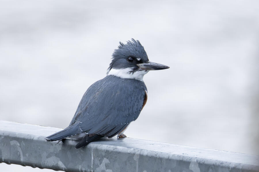 Belted KingfisherThere was a pair of noisy Kingfishers hanging out the edge of the lake. As per usual they were pretty flighty and hard to photograph, but right as I was heading to my car I noticed this one perched in a good spot. I was able to sneak up a little on her with the car between us and get these shots.
