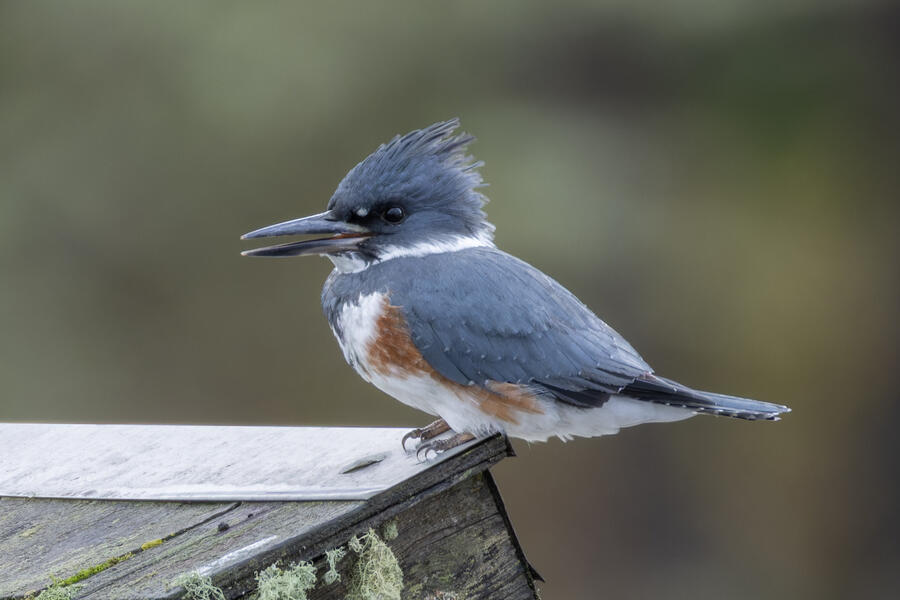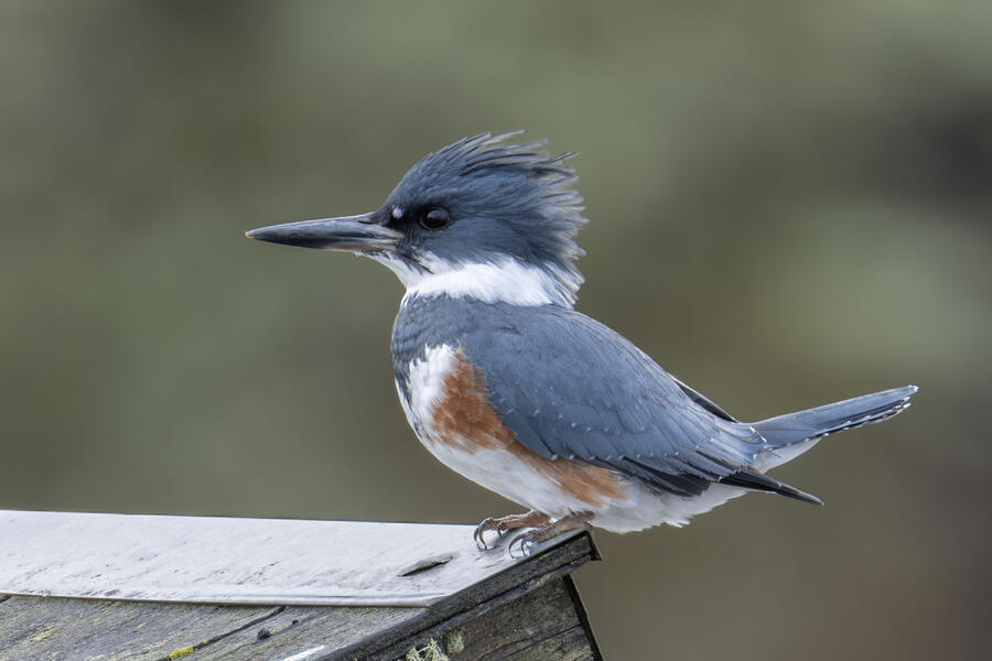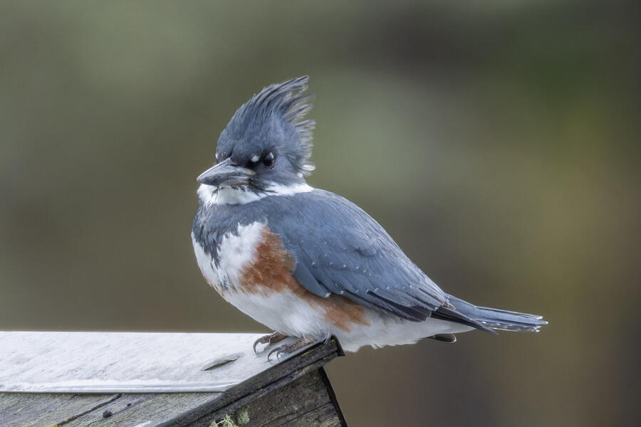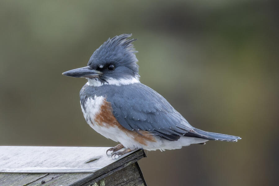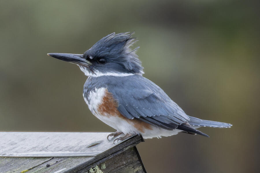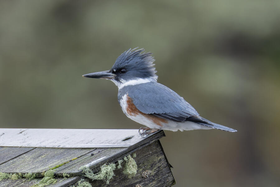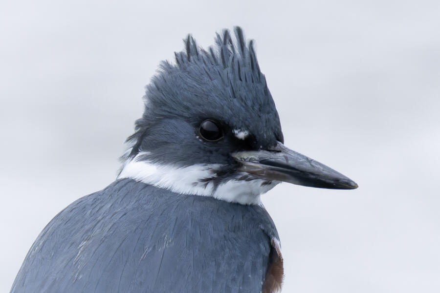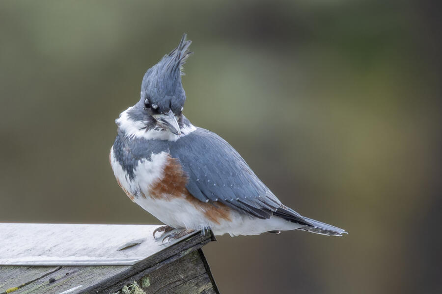 Belted KingfisherThere was a pair of noisy Kingfishers hanging out the edge of the lake. As per usual they were pretty flighty and hard to photograph, but right as I was heading to my car I noticed this one perched in a good spot. I was able to sneak up a little on her with the car between us and get these shots.