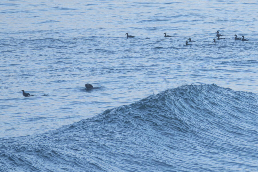 Surf Scoter, Black ScoterI don't know how often seals/sealions hunt scoters but I noticed the Surf Scoter on the left really getting out of the way!