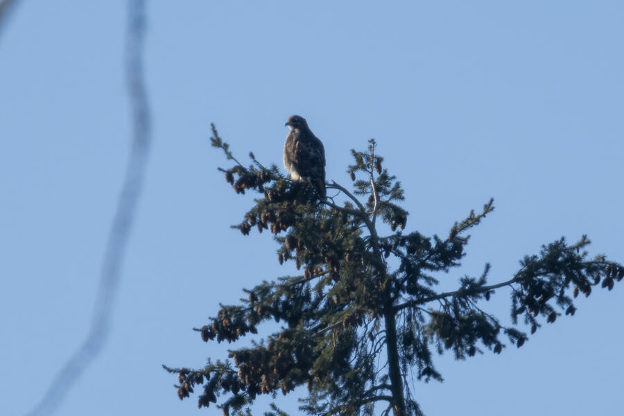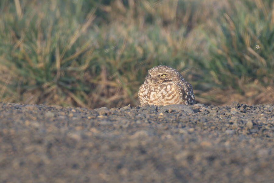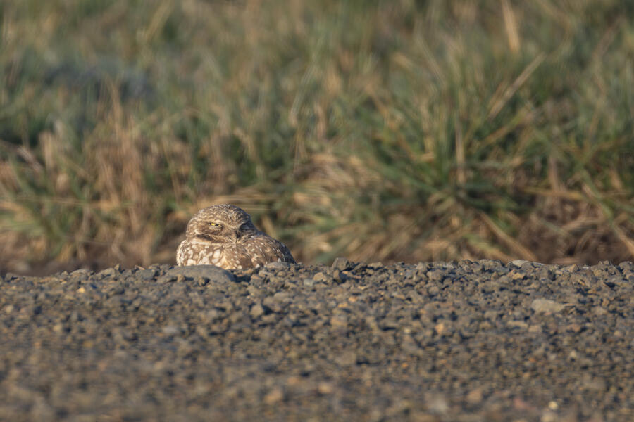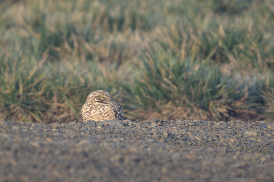 The Burrowing Owl had been reported on a farm field, so I wasn't too optimistic about finding it. I got there on a cold morning with some fog in the area. I was scanning the fields with my binoculars and stumbled across it peeking over the side of the road at me! I got a few photos of the top half of the owl, but as I slowly made my way around to try to get a clear view some thick fog rolled in! I returned a few days later and wasn't able to find it. It was a fun lifer to get to watch for a few minutes. I hope to see a group of them hunting one day.