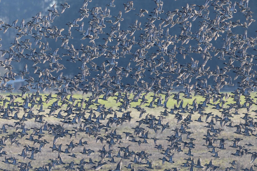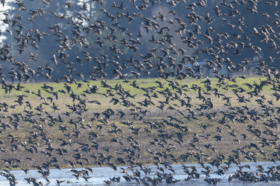 There have been several Baikal Teal sightings in Oregon this month, which is exciting because this is a bird normally found in east Asia. I made the short drive and spent the morning, with a couple dozen other birders, trying to find this bird among a flock of 1,500 other ducks. Over the three hours I was there nobody spotted it. I took a few photos of the flock while at rest and while flying, but I couldn't find it among all the other ducks in the photos. Maybe someday an AI tool will be able to identify all the unique bird species in a photo of a flock.