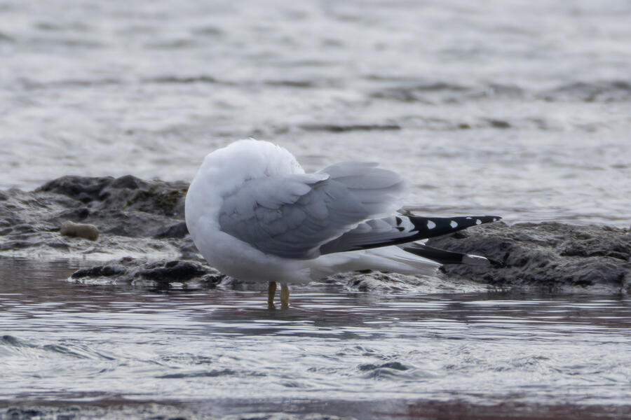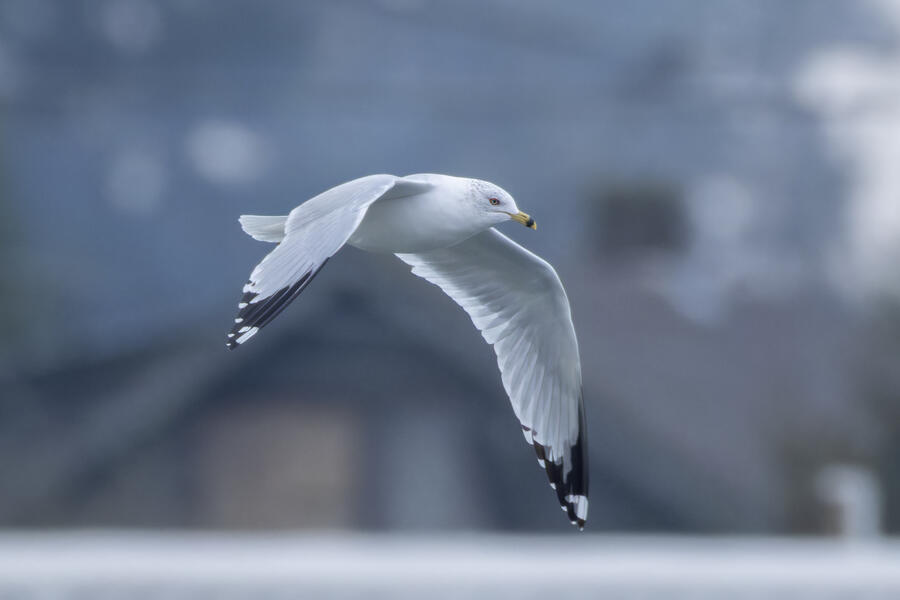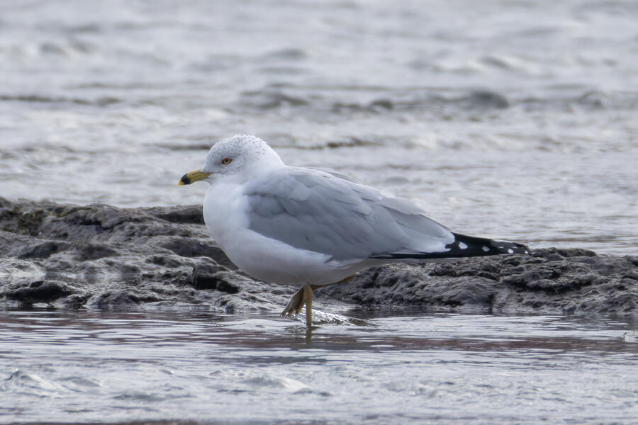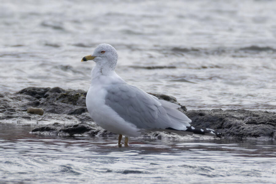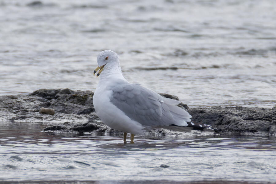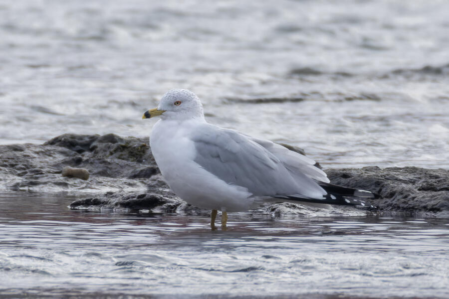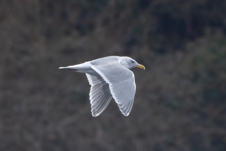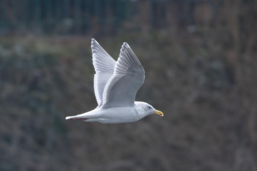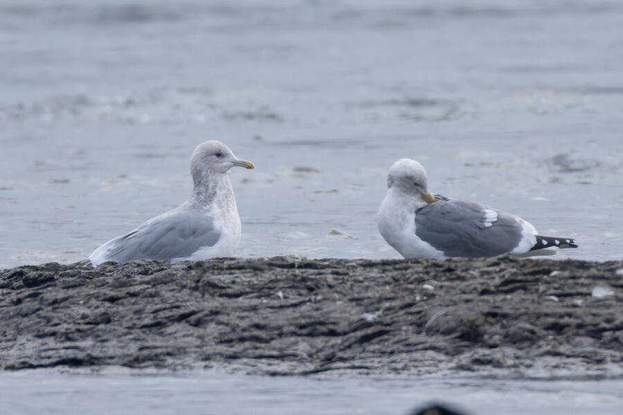 Iceland Gull (Thayer's)The Thayer's on the left has a relatively small, straight bill showing greenish tinge, a light gray back, and dark but not black wingtips.