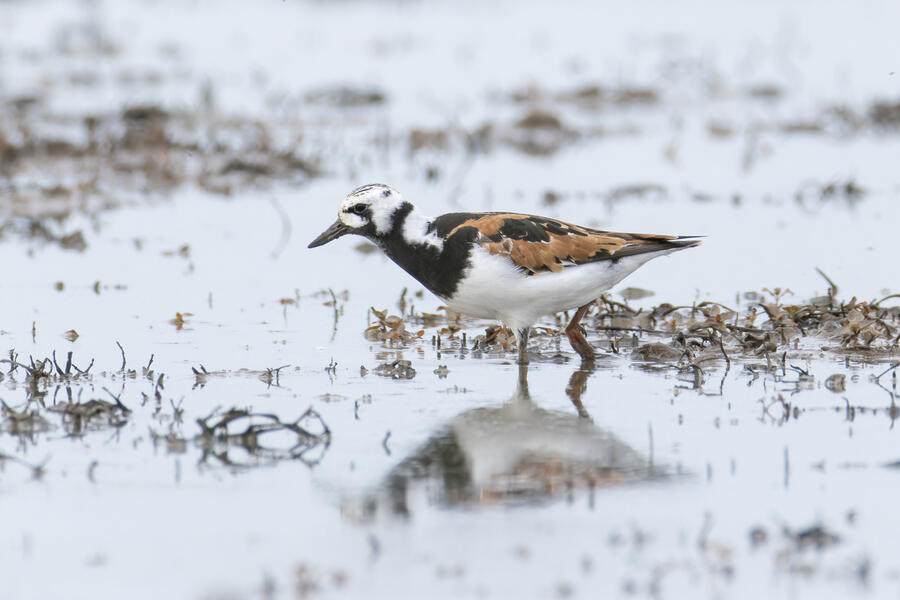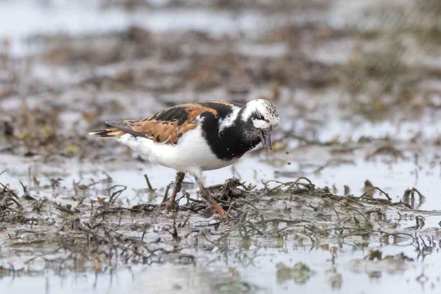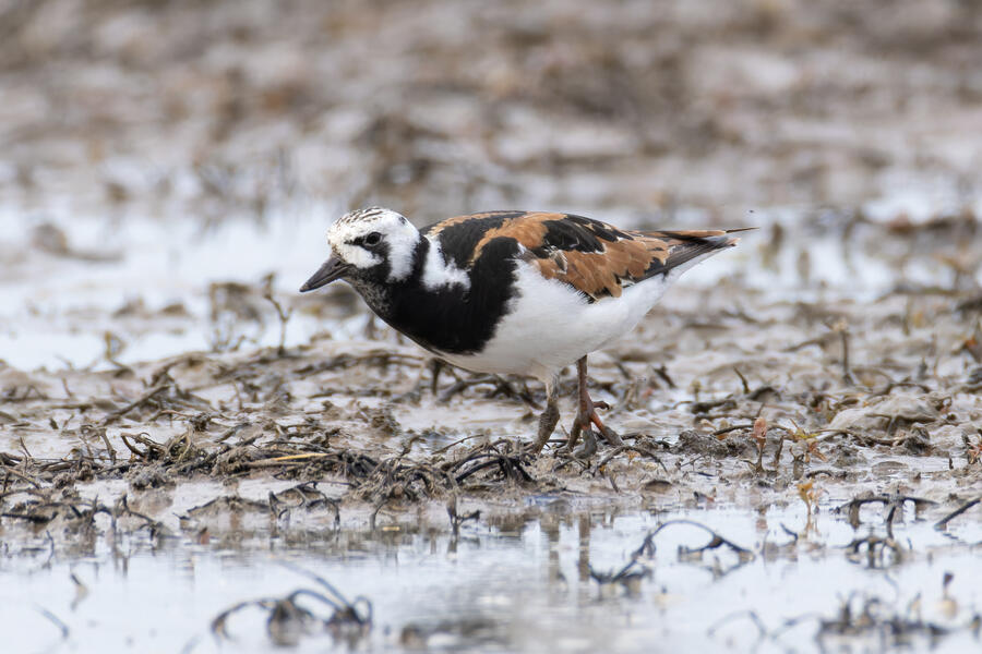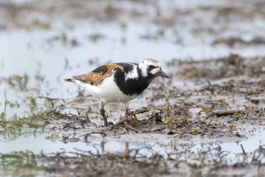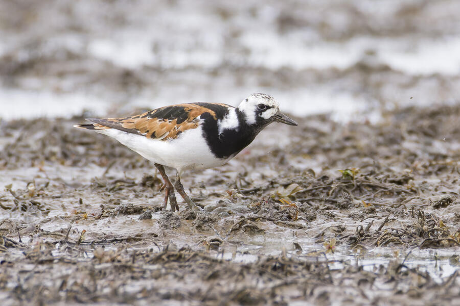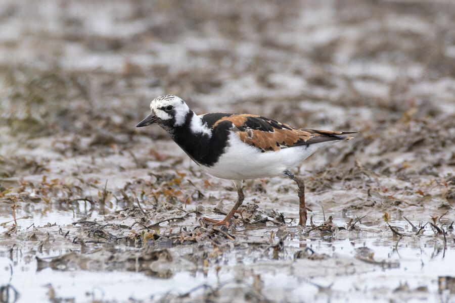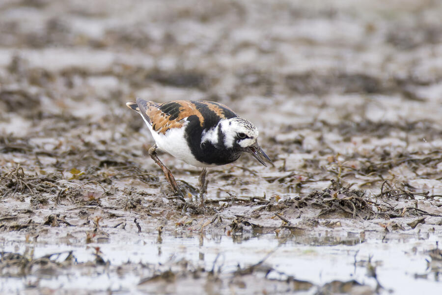 A few days ago, first thing in the morning, I got yard bird #75: Olive-sided Flycatcher. It was far away, but I count any bird I can see or hear from my yard as a yard bird. I was fortunate the bird didn't fly off while I hurried to grab my camera. After looking at the photos, I thought it might have been my first yard-photographed Western Wood-Pewee, but there's enough contrast between the dark and light areas of the "vest" appearance that I'm pretty sure it was an Olive-sided Flycatcher. A little while later that day, I saw an eBird notification of a nearby rare Ruddy Turnstone. These birds are pretty rare here on the coast, where they are normally found, and even more infrequent inland here. I got a chance to go looking for it in the early evening, and again I was luckily able to easily find and photograph the bird. A great and easy lifer! Even while being somewhat careful with the shutter button, I shot over 1,500 frames of the bird! It took a lot of work to go through them all to pick out the best ones. None of the photos came out super sharp, and the background/environment in the photos isn't terribly photogenic, but it was terrific to get a chance to see and photograph this cooperative bird.