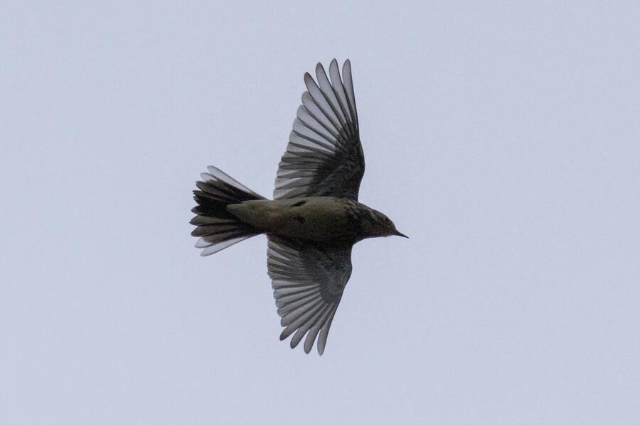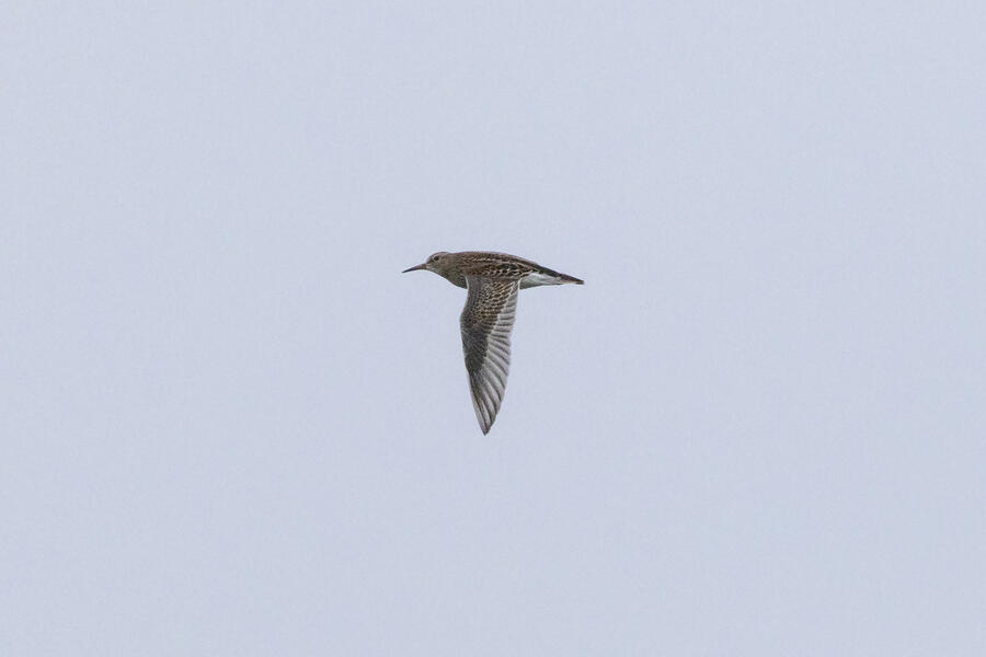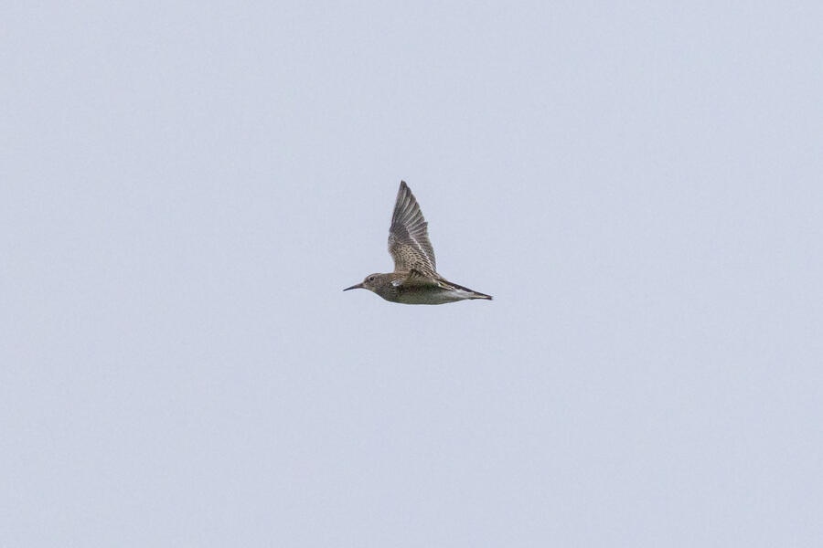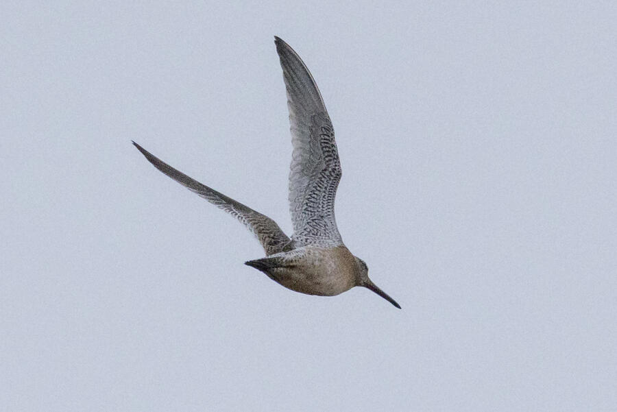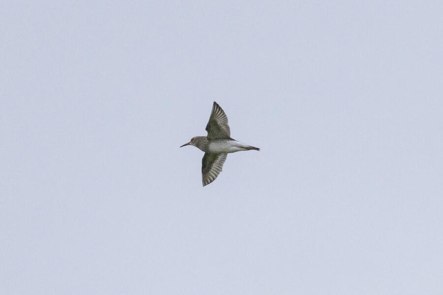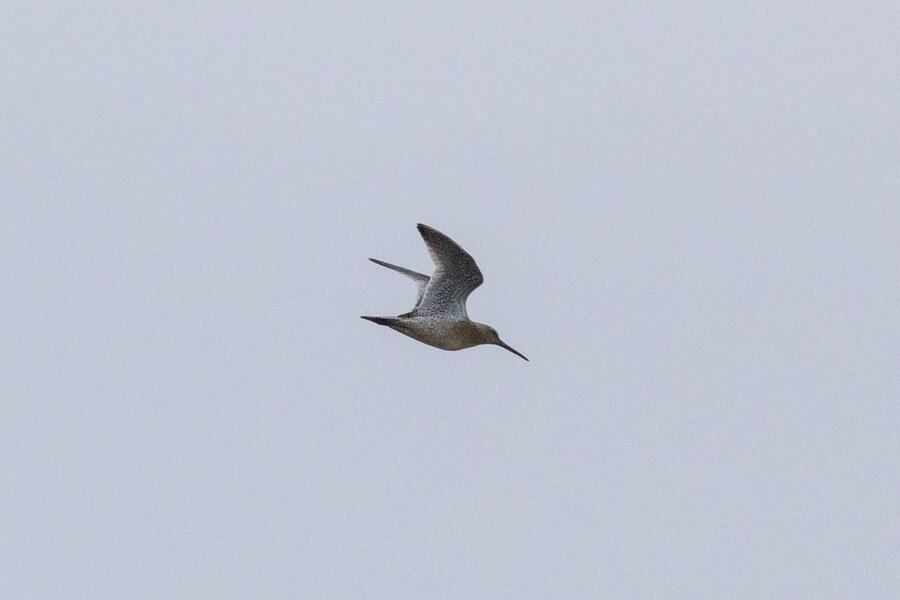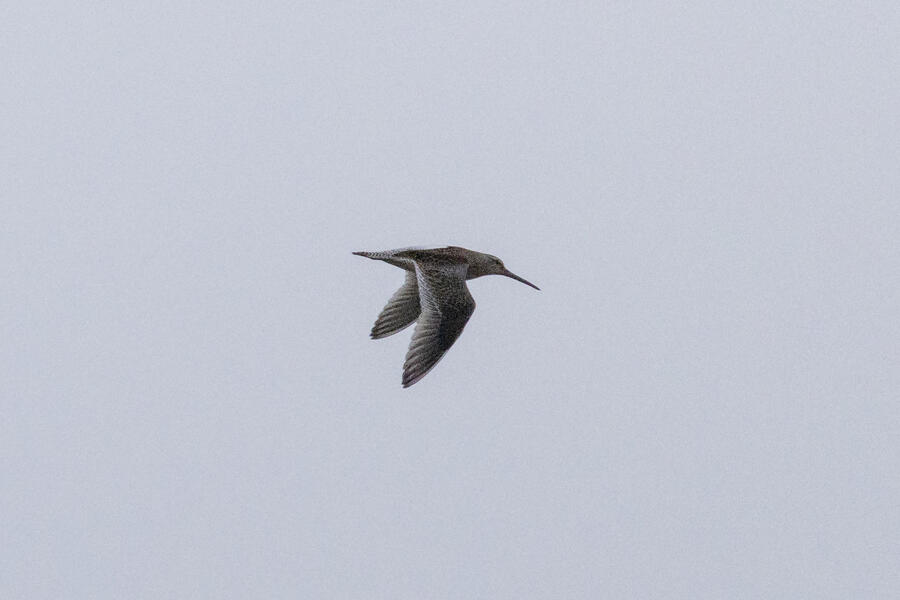 I heard a few distinct Short-billed Dowitcher calls as this bird flew by a couple times over a span of a few minutes. On the second flyby, I was ready and got some shots. Short-billed are pretty uncommon here (and very hard to distingish from Long-billed), so it was great to get a lone bird where I know which one it was! No barring is visible on the flanks, only light spotting. Otherwise, I'm not sure any real field marks are visible here.