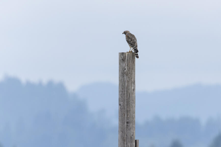 This falcon was much smaller than the nearby Northern Harrier, and is very dark with heavy streaks along the flanks. Merlin!