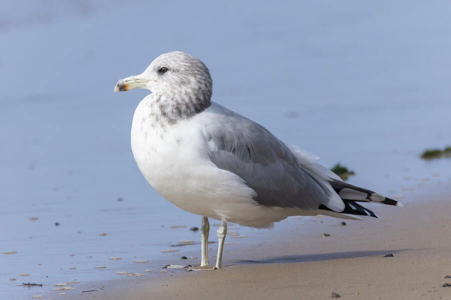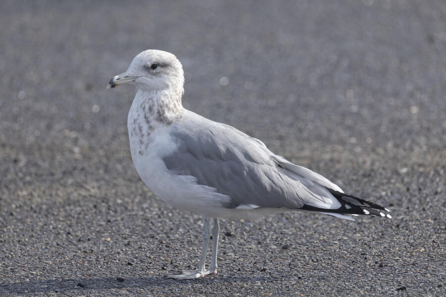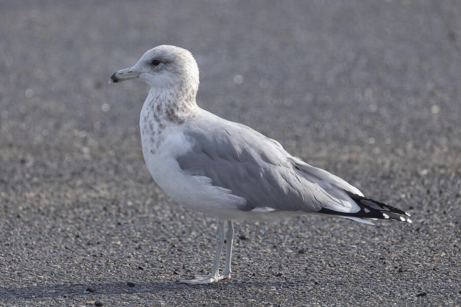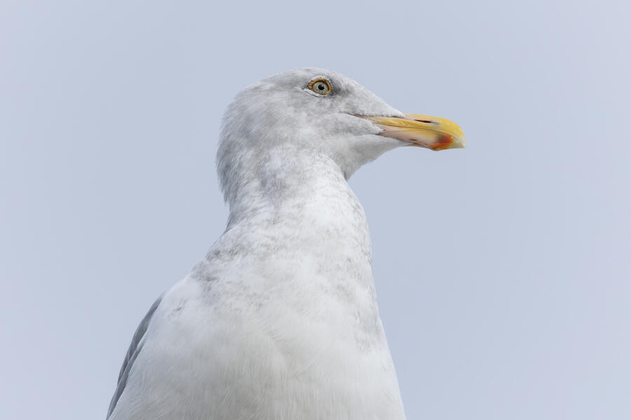 American Herring GullThis gull shows Herring field marks including a yellow/orange orbital and light eye. The bill is not bulbous enough for Western Gull, and shows black in bill which Western would not have. Also, the back is too light for Western.