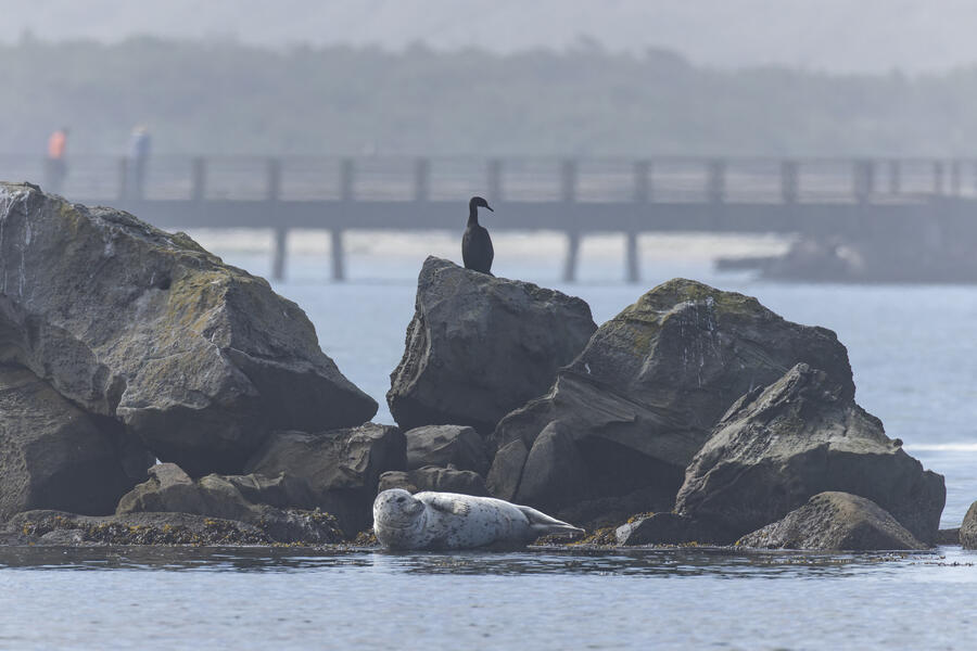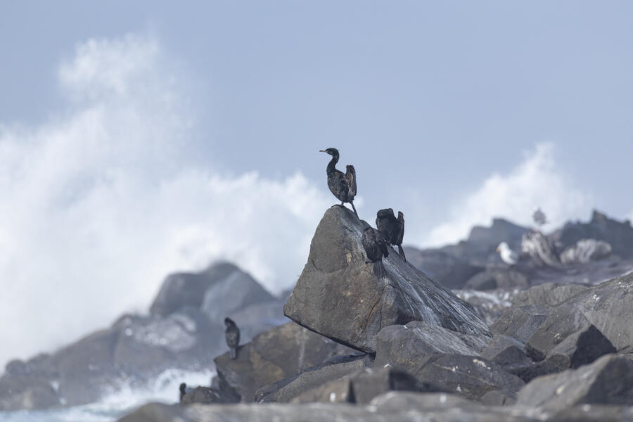 I got a chance recently to make a quick trip to the coast. The waves were pretty rough, and I was able to get a shot of a Brandt's Cormorant popping out of the bubble bath with a fish! I didn't see a Heermann's Gull like I hoped, but did get some distant scope views of a lifer Surfbird.