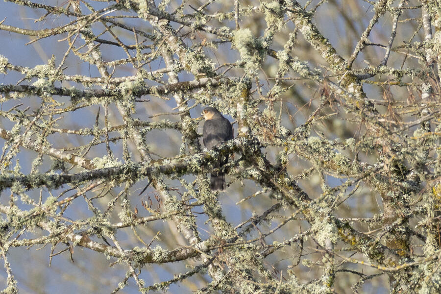 Sharp-shinned HawkThis did not strike me as a Sharp-shinned when I saw it in person. But in the photos it clearly has a "bug-eyed" look, dark nape that doesn't contrast much with the crown, and a squared off tail without a strong white terminal band.