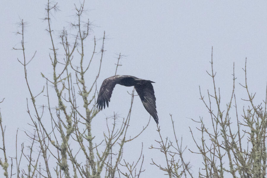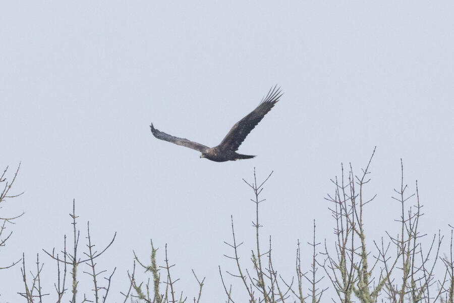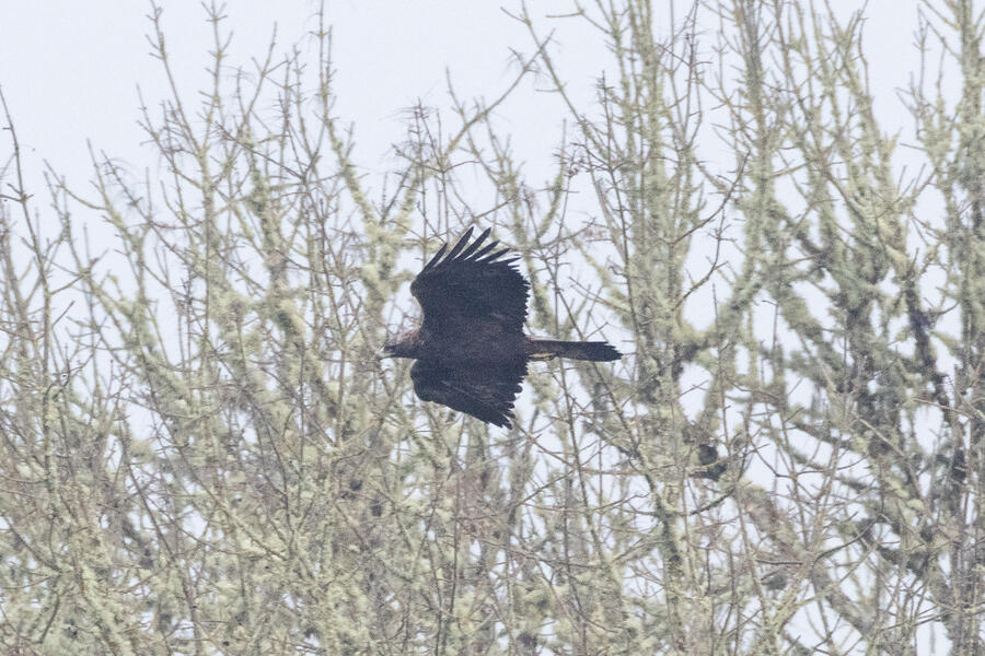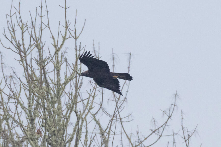 A Golden Eagle was reported near town, and I was able to go out a couple times to look for it. On the first day, I found a handful of Red-tailed Hawks, some Northern Harriers, and a distant Bald Eagle. As I was walking back to the car, I spotted another eagle coming in low... it was mostly a dark bird, perhaps good for Golden Eagle. I only had time to get a few photos before I lost sight of it. Upon reviewing the photos it was a Golden Eagle! I got such a brief look at it I had to go out again to try to see it. Later that afternoon I went to a nearby location and found only a Bald Eagle.