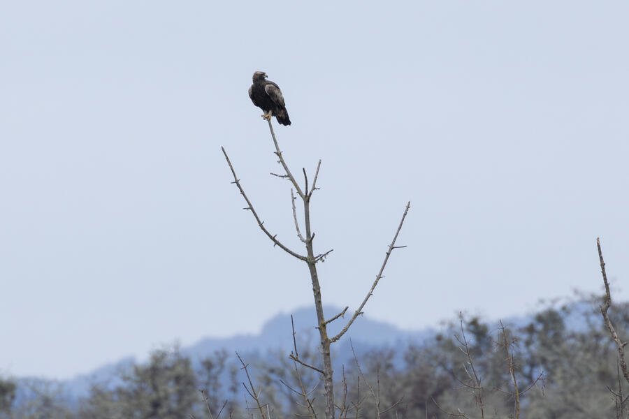I returned the following morning and found the Golden Eagle perched in the expected location. This time, I got scope and binocular views of it, and plenty of photos. It flew around for a while and eventually settled back down on the perch again. While not a lifer (I'd seen a distant soaring Golden Eagle in November) I really appreciated getting a much longer look at this bird.
